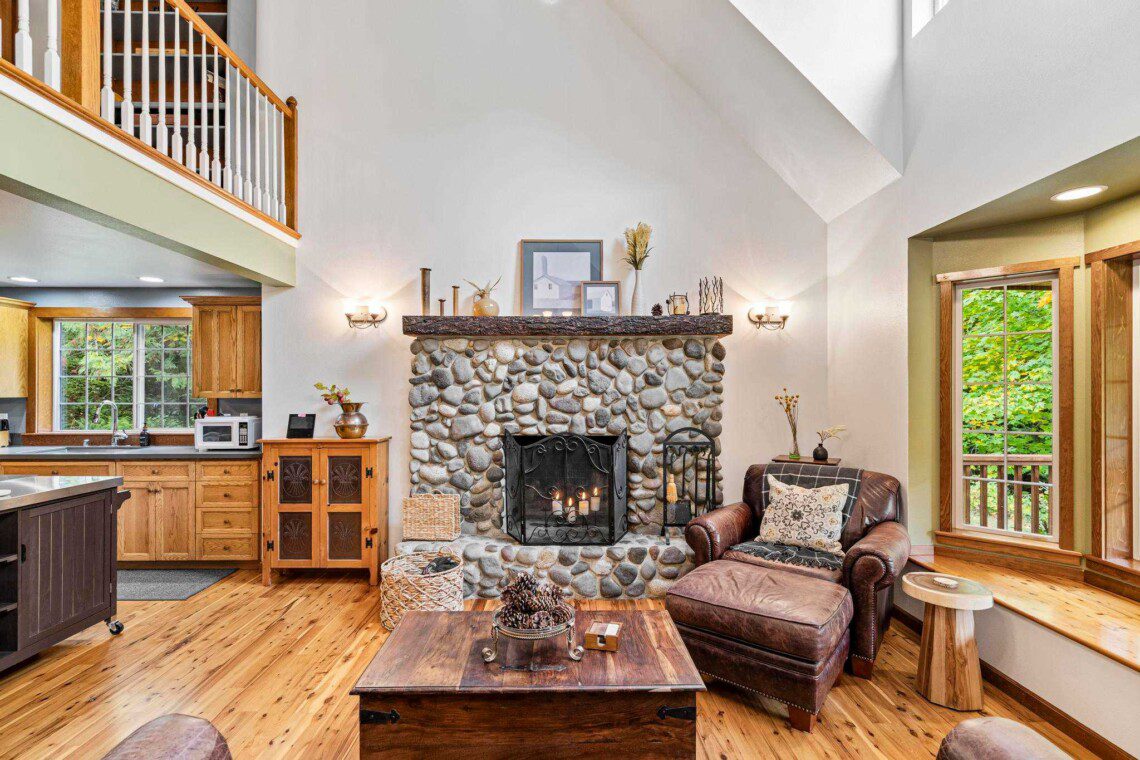 Apple Lodge is a 3-bedroom, 2-bath family home tucked among the trees in Olympia. Built in 1995, it’s been part of the same family for over 30 years, lovingly handcrafted with thoughtful details throughout. Every corner tells a story — from the custom woodwork to the beautifully designed fireplace and mantle, the true heart of the home where comfort and craftsmanship meet.