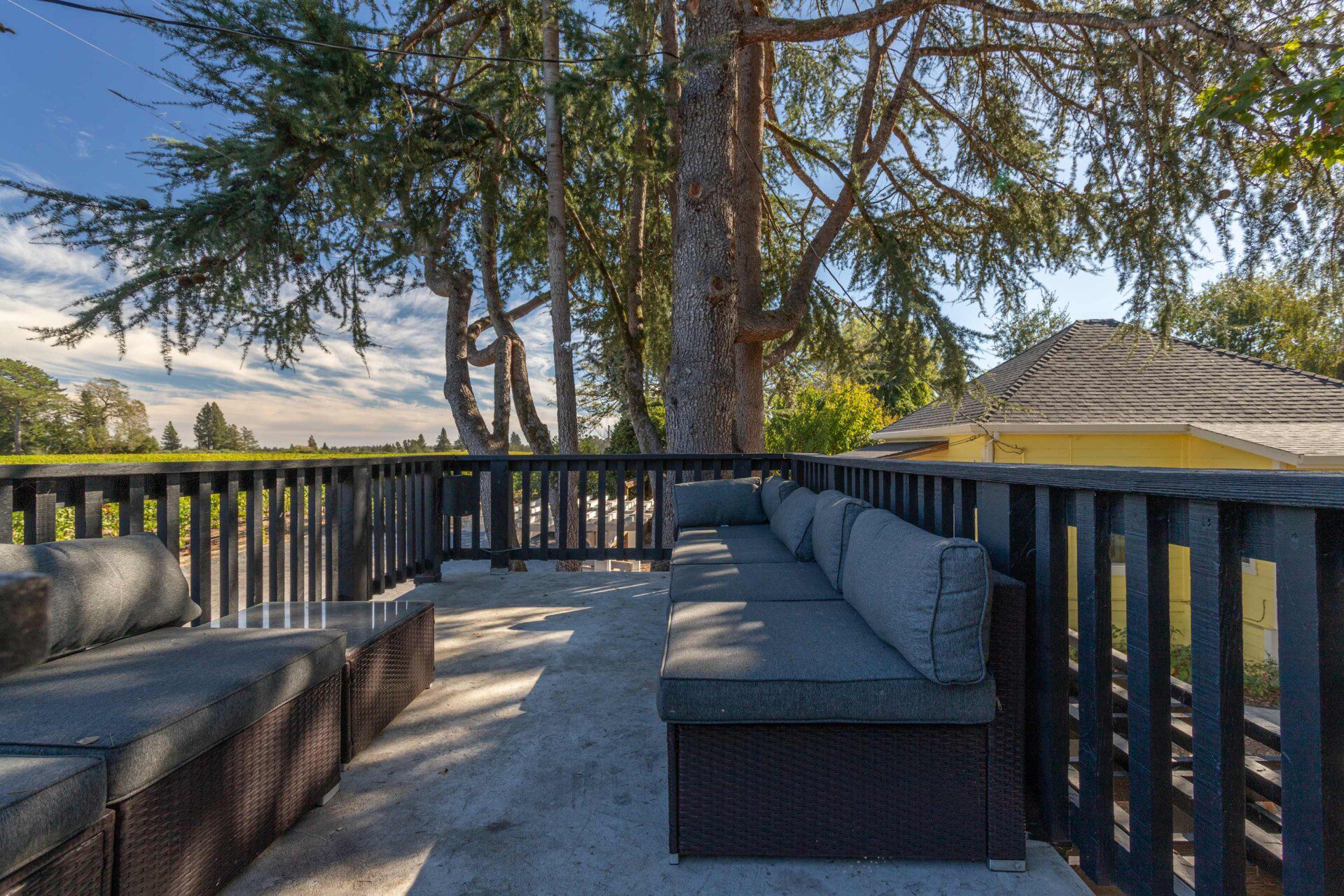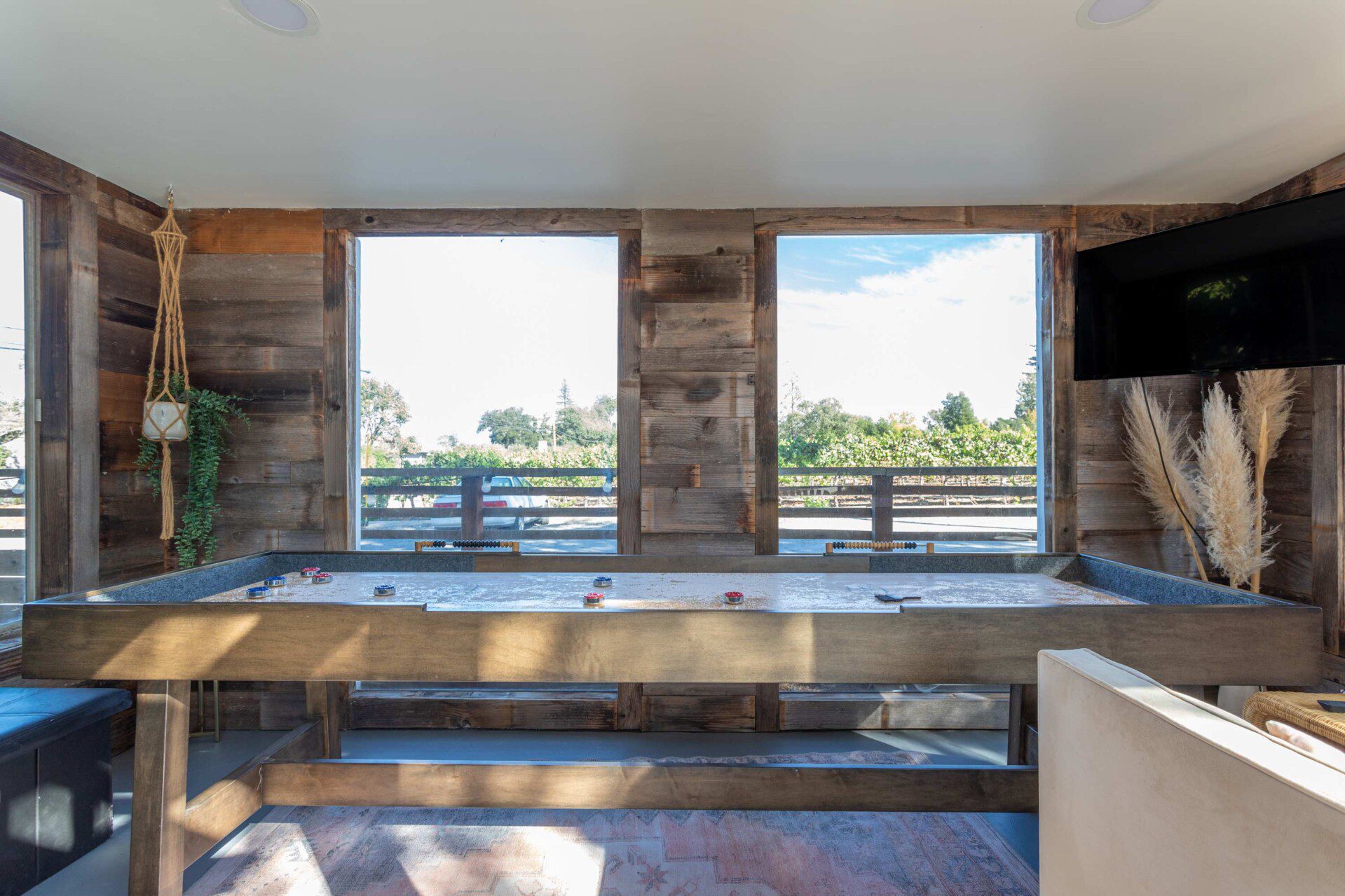 For fun, the game room features a full-sized shuffleboard. Head outside to the spacious front porch or the rooftop deck, where you can soak in panoramic vineyard views and enjoy the fresh Sonoma air. The Traeger pellet BBQ is ready for al fresco dining, making the outdoor space just as inviting as the indoors.