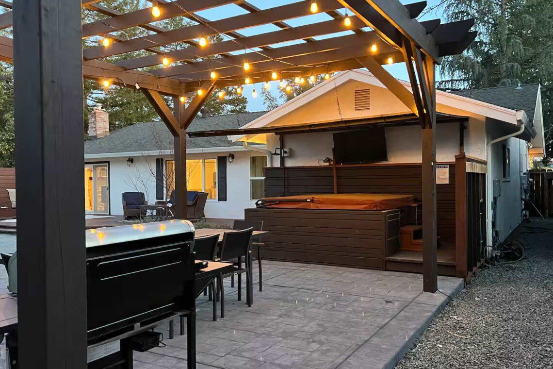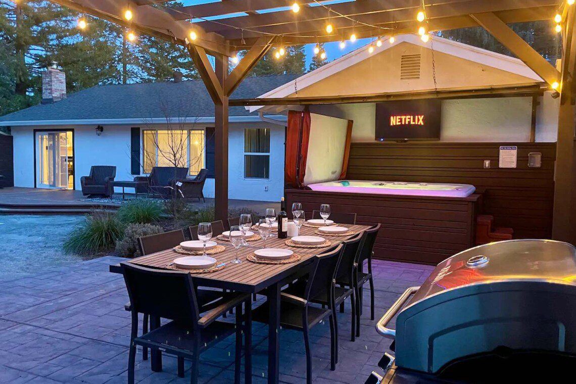 Located down a quiet private lane next to a local middle school, the home offers both privacy and easy access to Sonoma’s best offerings. Wineries, restaurants, local parks, and charming towns like Glen Ellen and Napa are all within a short drive. Whether you’re wine tasting, hiking, or just relaxing in the hot tub, this location makes it easy to enjoy the best of Wine Country.