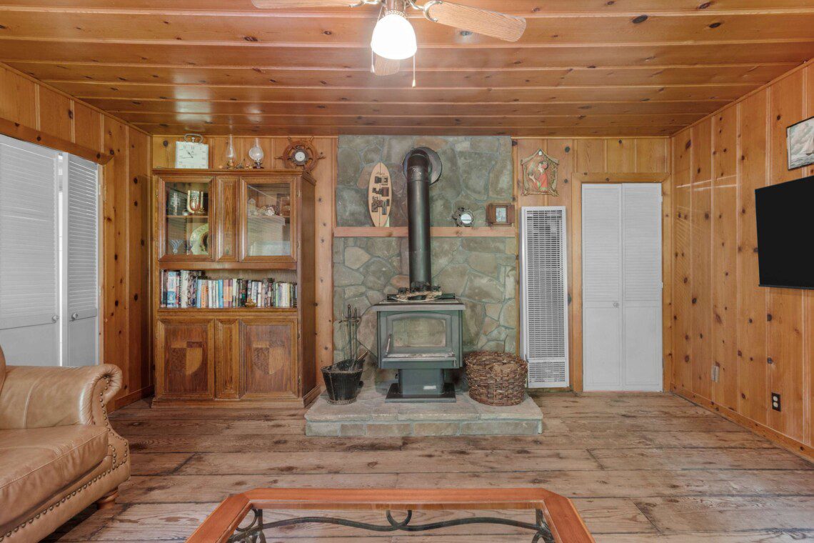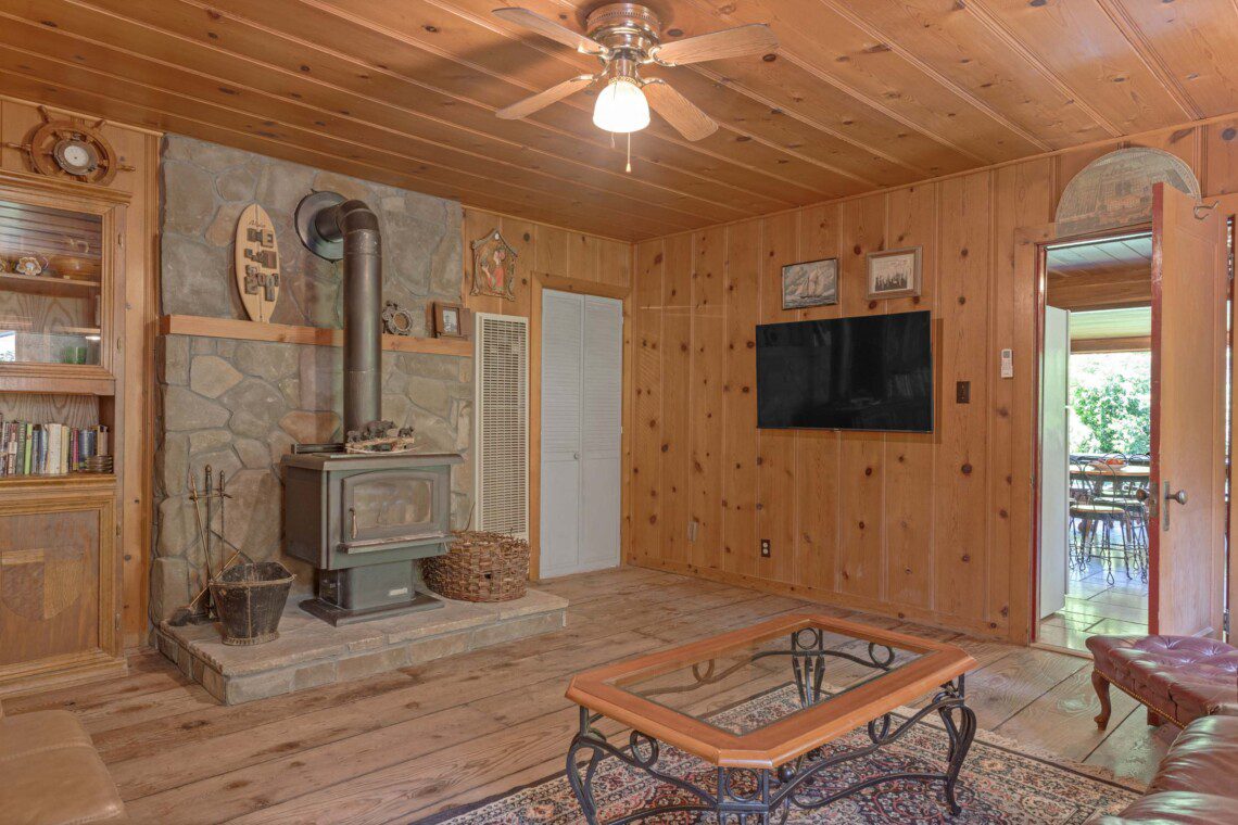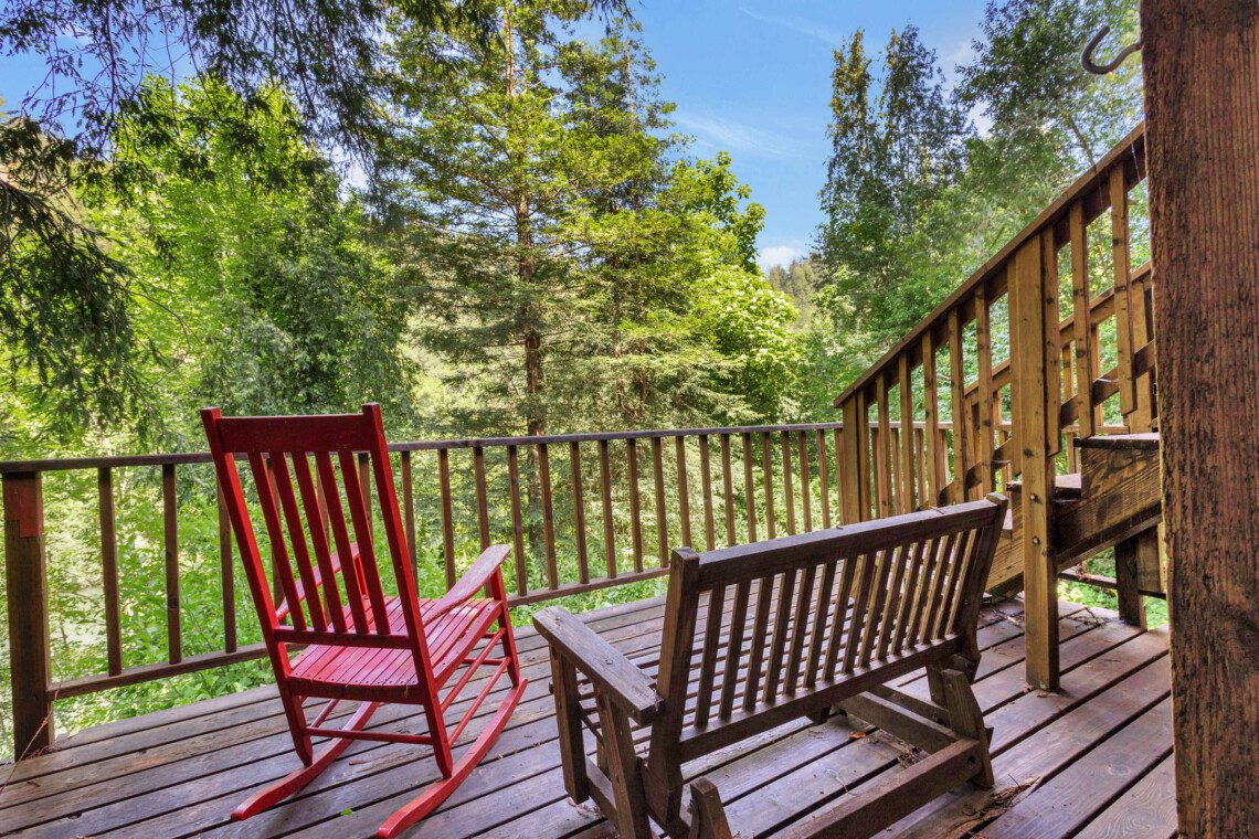 This cozy 3-bedroom riverfront cabin offers a peaceful retreat surrounded by redwoods and scenic river views. The primary bedroom features a comfortable king bed with a memory foam mattress, offering a cozy space to relax after a day of exploring. The second bedroom has a comfortable queen bed and the last bedroom has a twin bunkbed, perfect for children or friends sharing the space. Bring your furry friends along too, as this dog-friendly home welcomes pets. With its classic wood stove and cabin charm, the open living area is a welcoming spot to unwind. Outside, enjoy the large deck for grilling and alfresco dining while taking in the tranquil river setting.