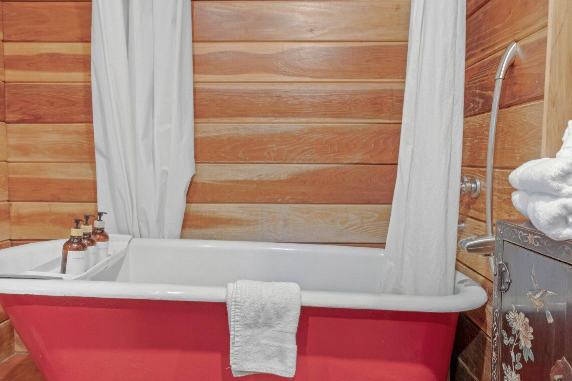 Set in the heart of Sonoma County, Guerneville is known for its lush redwoods and laid-back vibe. The cabin is perfectly located for nature lovers, with Johnson’s Beach and Armstrong Redwoods State Park both a short drive away. In addition to its natural beauty, Guerneville boasts a vibrant community with a variety of restaurants, bars, and shops. Popular local spots include Boon Eat + Drink for farm-to-table dining and Guerneville Bank Club for unique treats and desserts. With several world-class wineries like Korbel Winery nearby, the region offers endless opportunities for outdoor adventure and wine tasting.