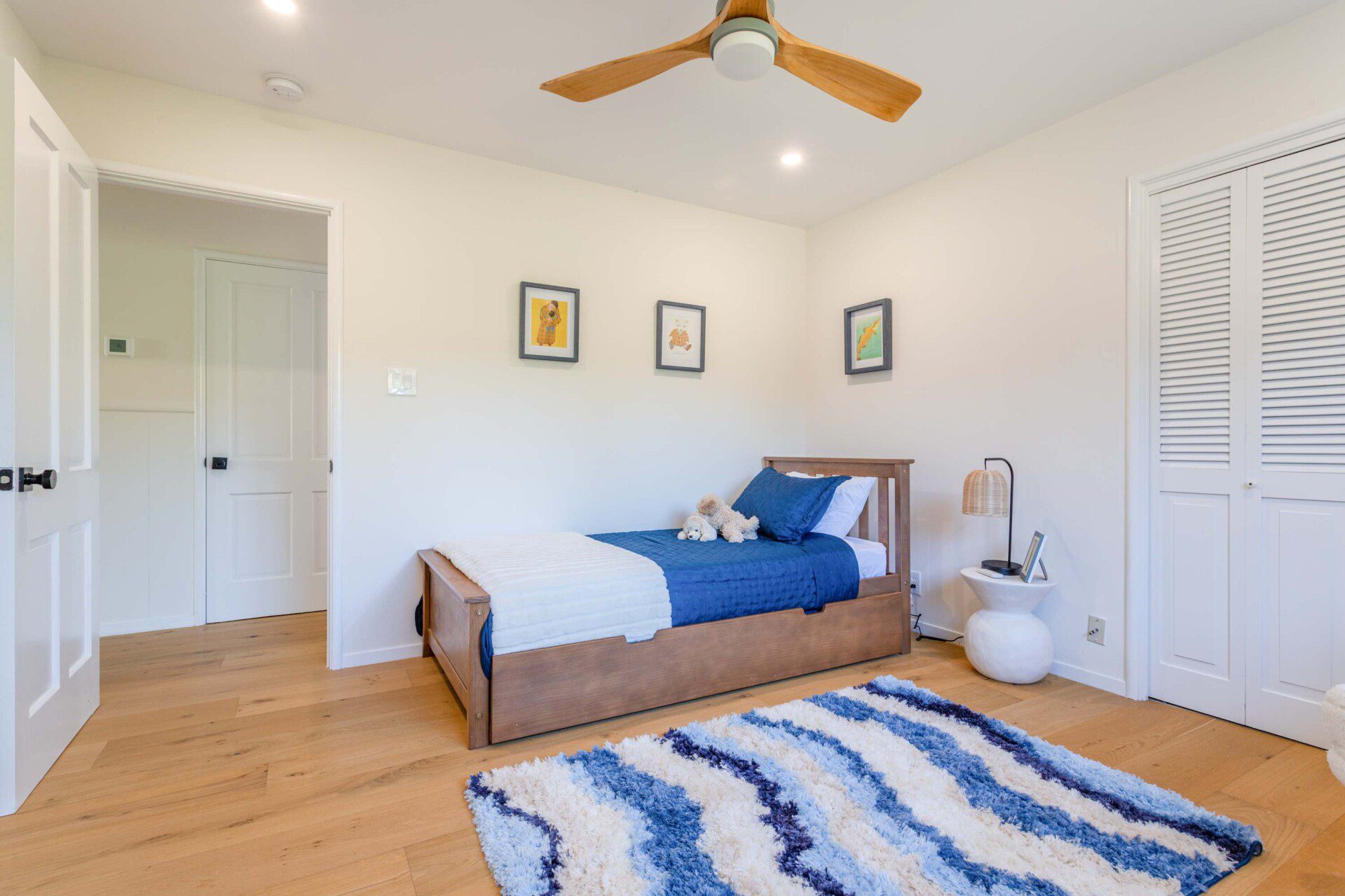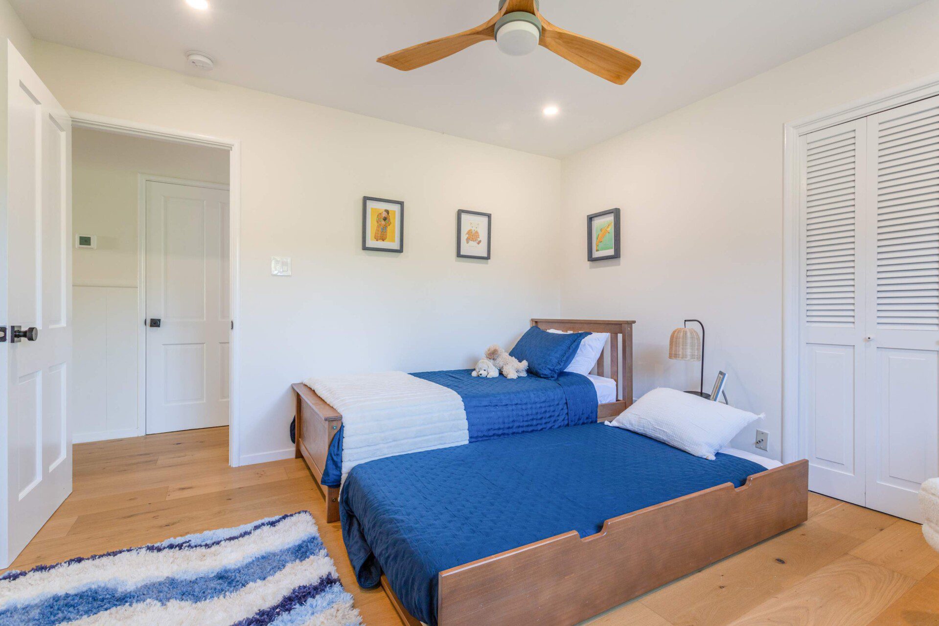 Between these two rooms, the third bedroom is thoughtfully designed for children or additional guests, with a twin bed and a pull-out trundle. With a dresser, chair, and large closet, this space is ideal for families traveling together, ensuring everyone has a comfortable place to rest.