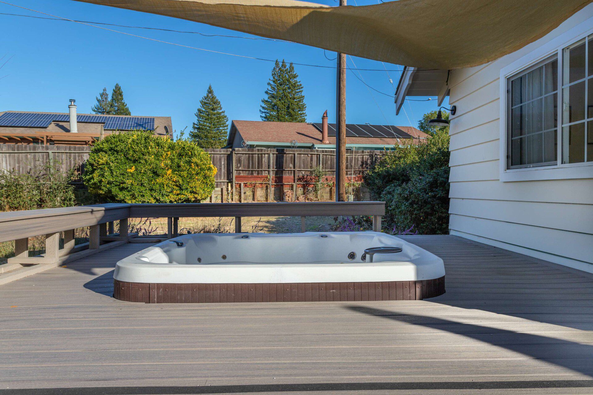 The patio off the living room and third bedroom invite you to dine alfresco, enjoy the hot tub, relax in the outdoor seating and enjoy the garden. The roses, seasonal wildflowers, and fruit trees provide a beautiful backdrop for your Sonoma County memories and we warmly welcome you to enjoy this outdoor space. For those who’d like to keep up their fitness, there is a dirt track around the perimeter of the fenced yard you’re welcome to use for walking or jogging.