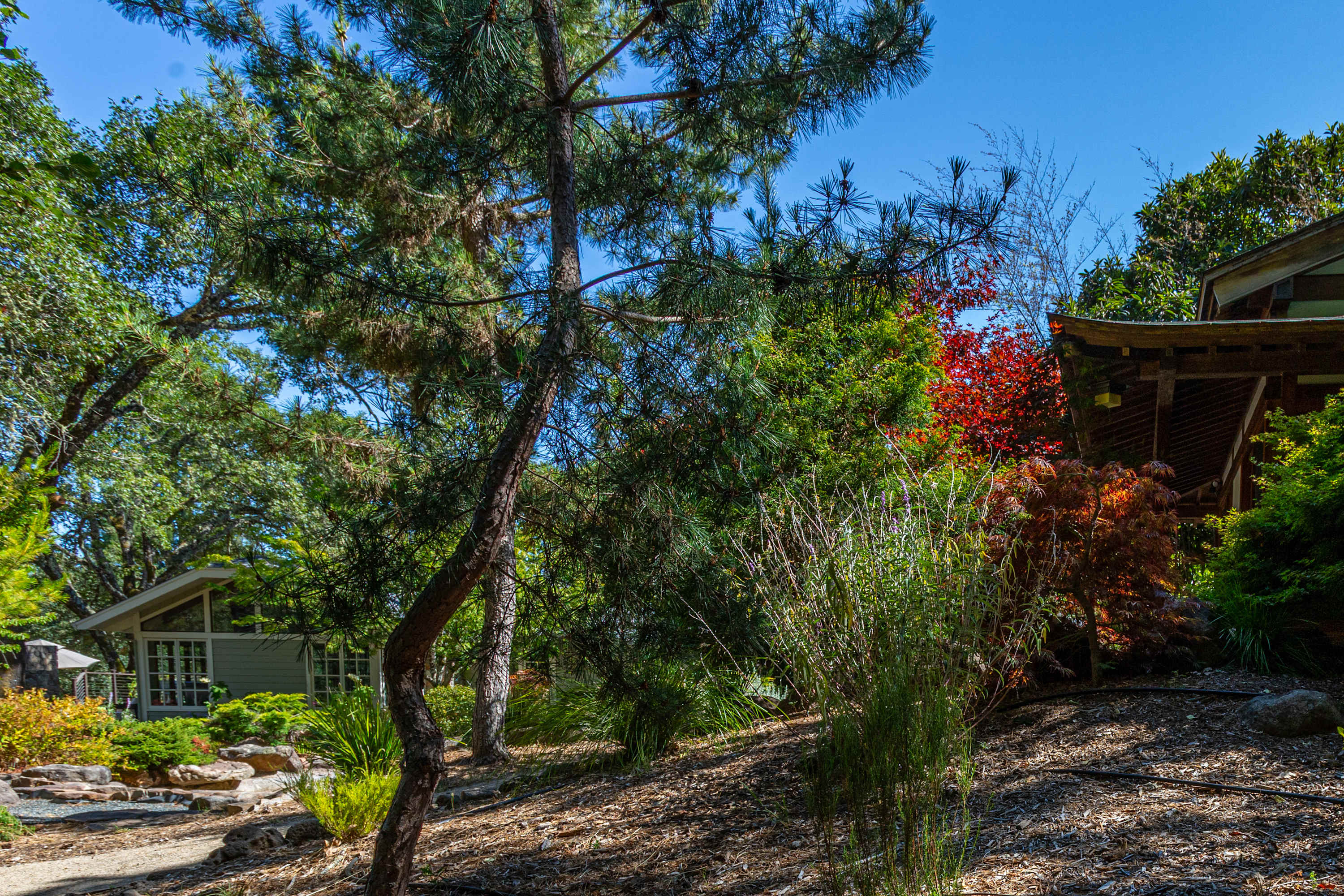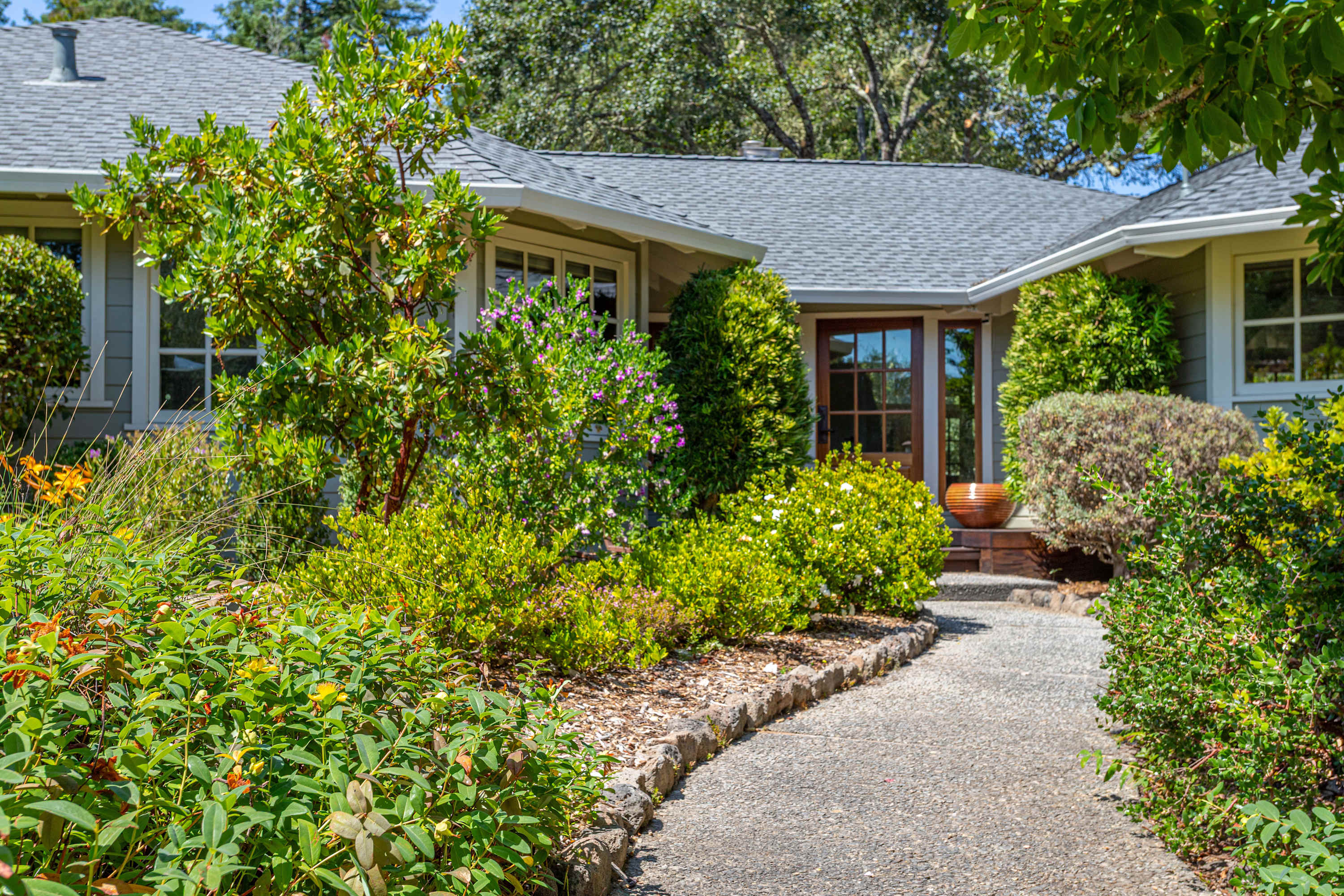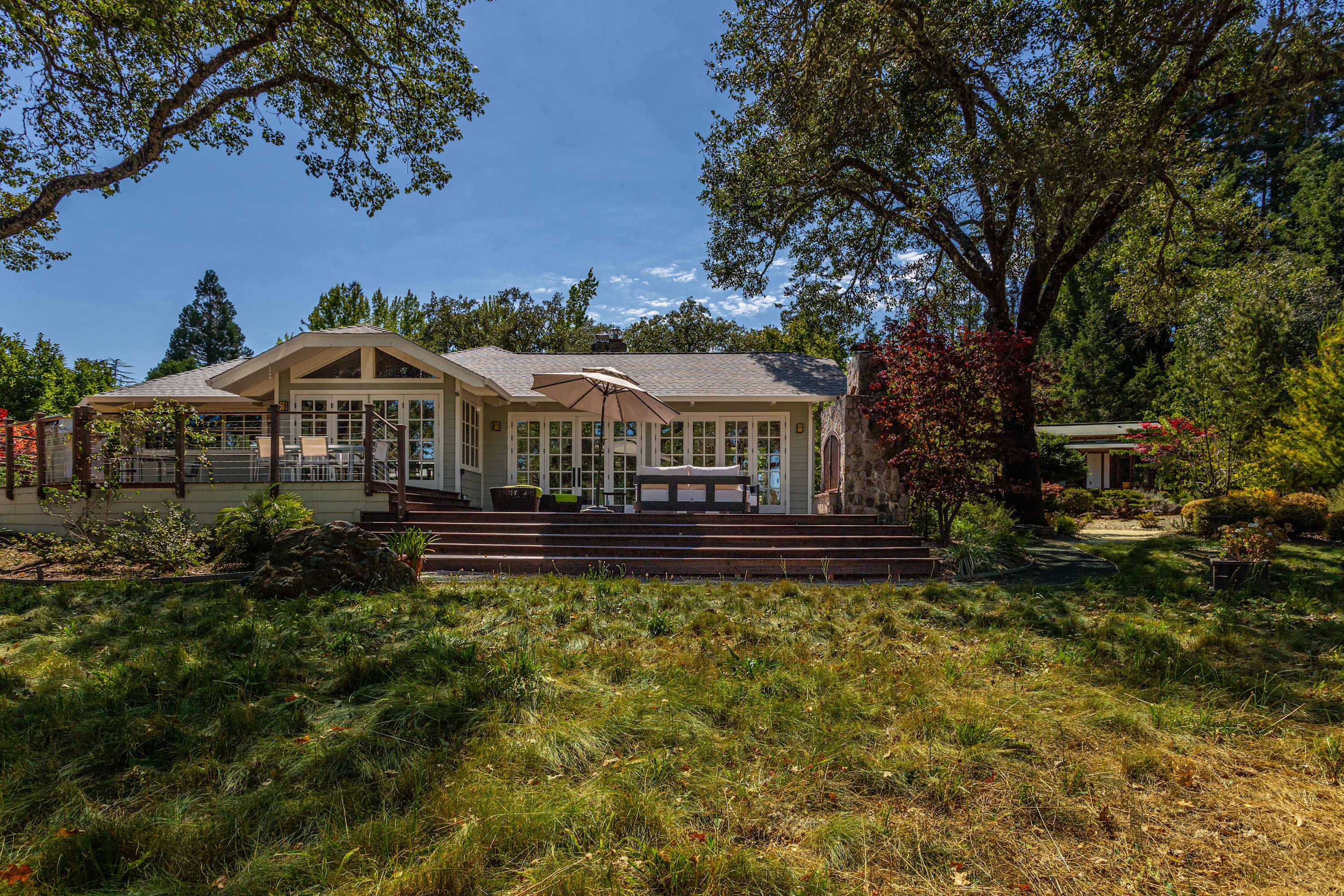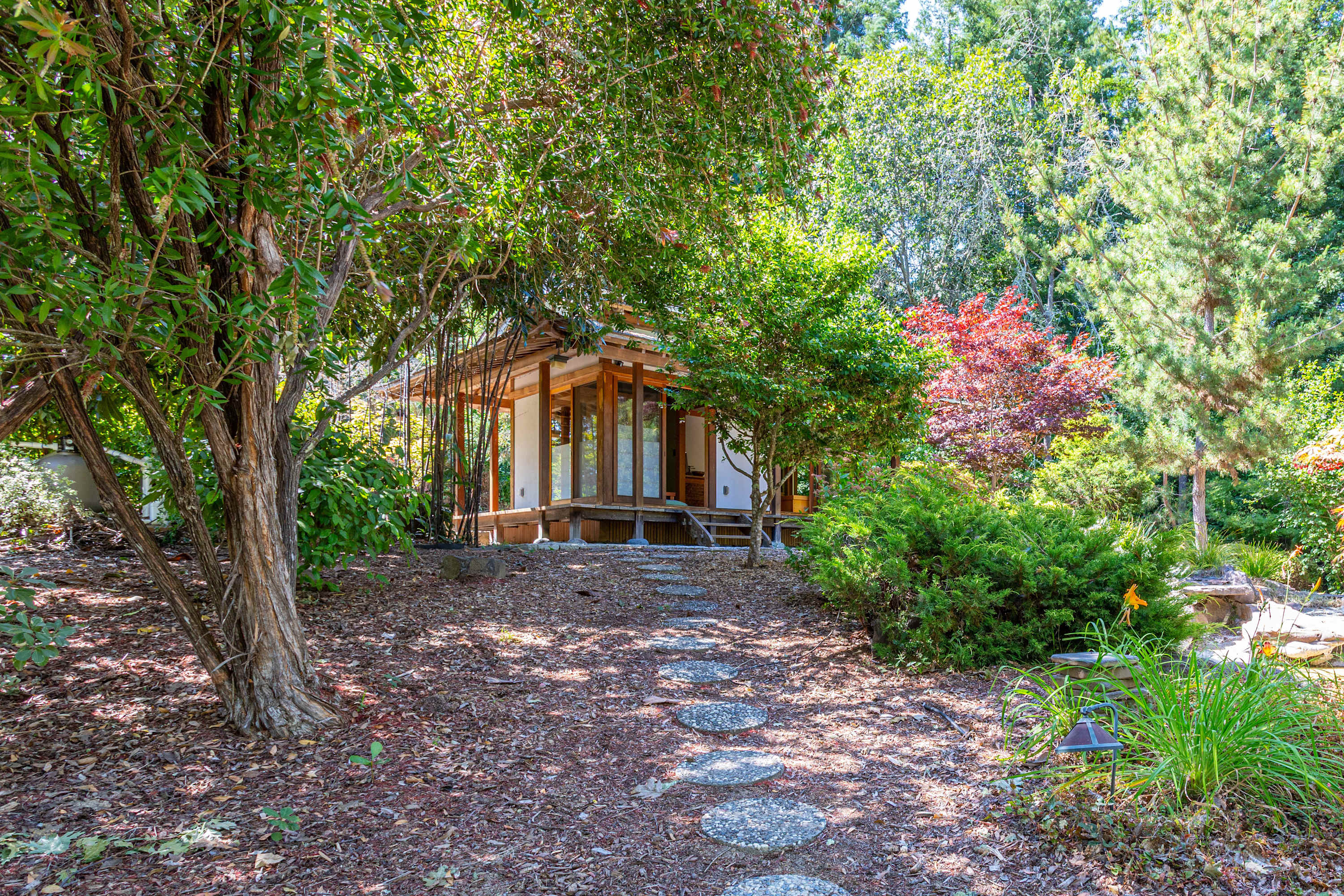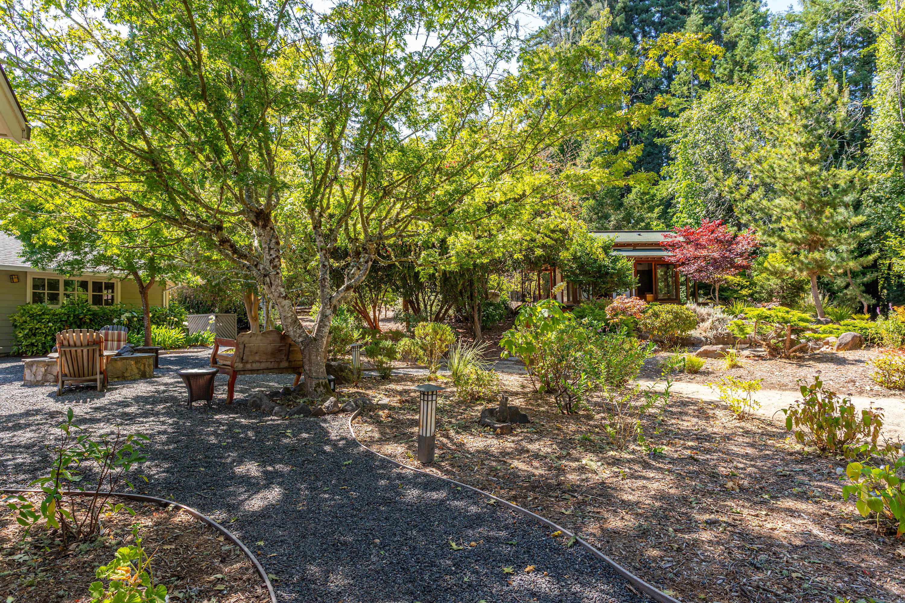 The grounds are your private resort. Explore acres of walking trails that wind through an redwood woodland, a fruit orchard, and a hobby vineyard. You'll find a pond, garden beds, and numerous amenities for recreation and relaxation, including: