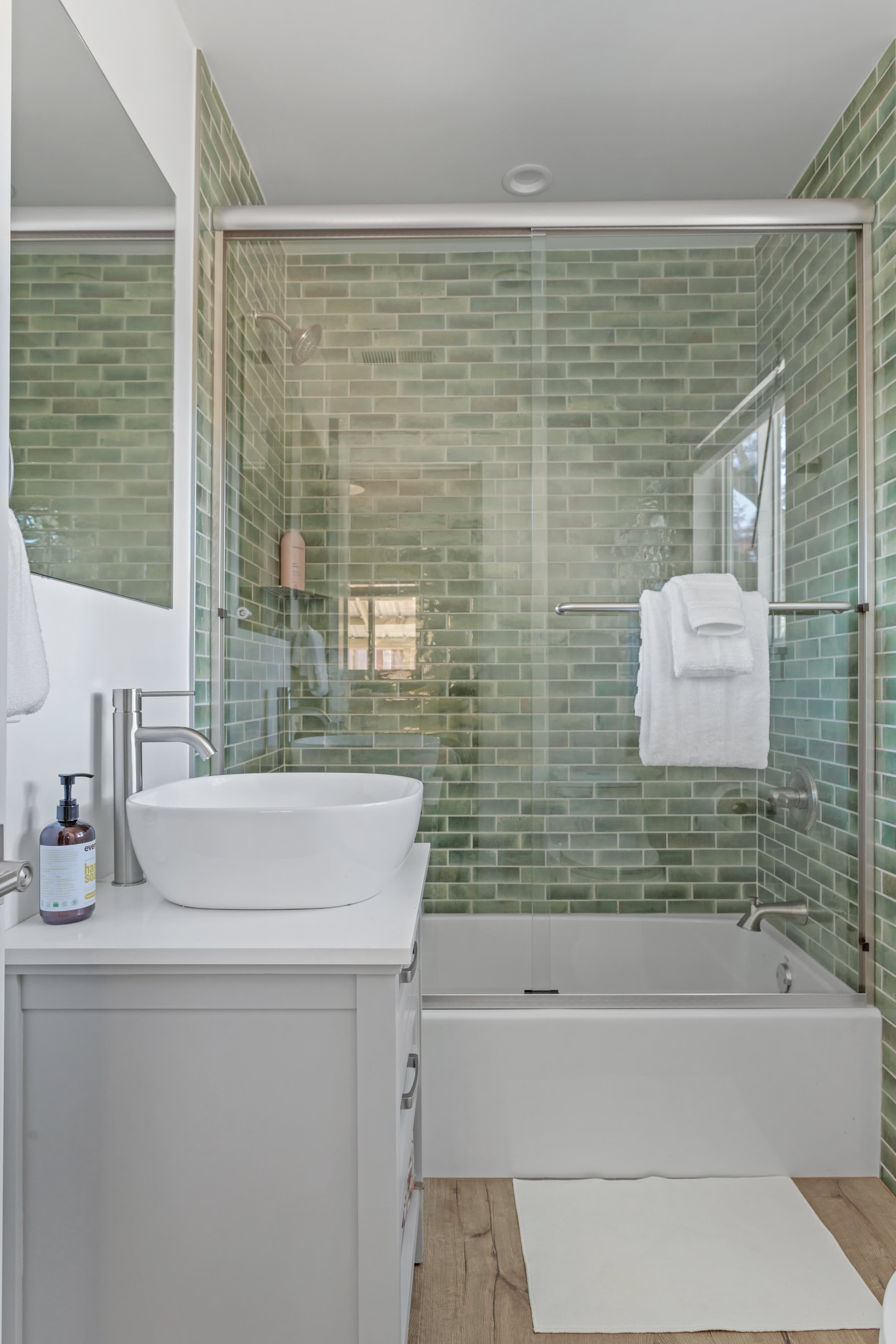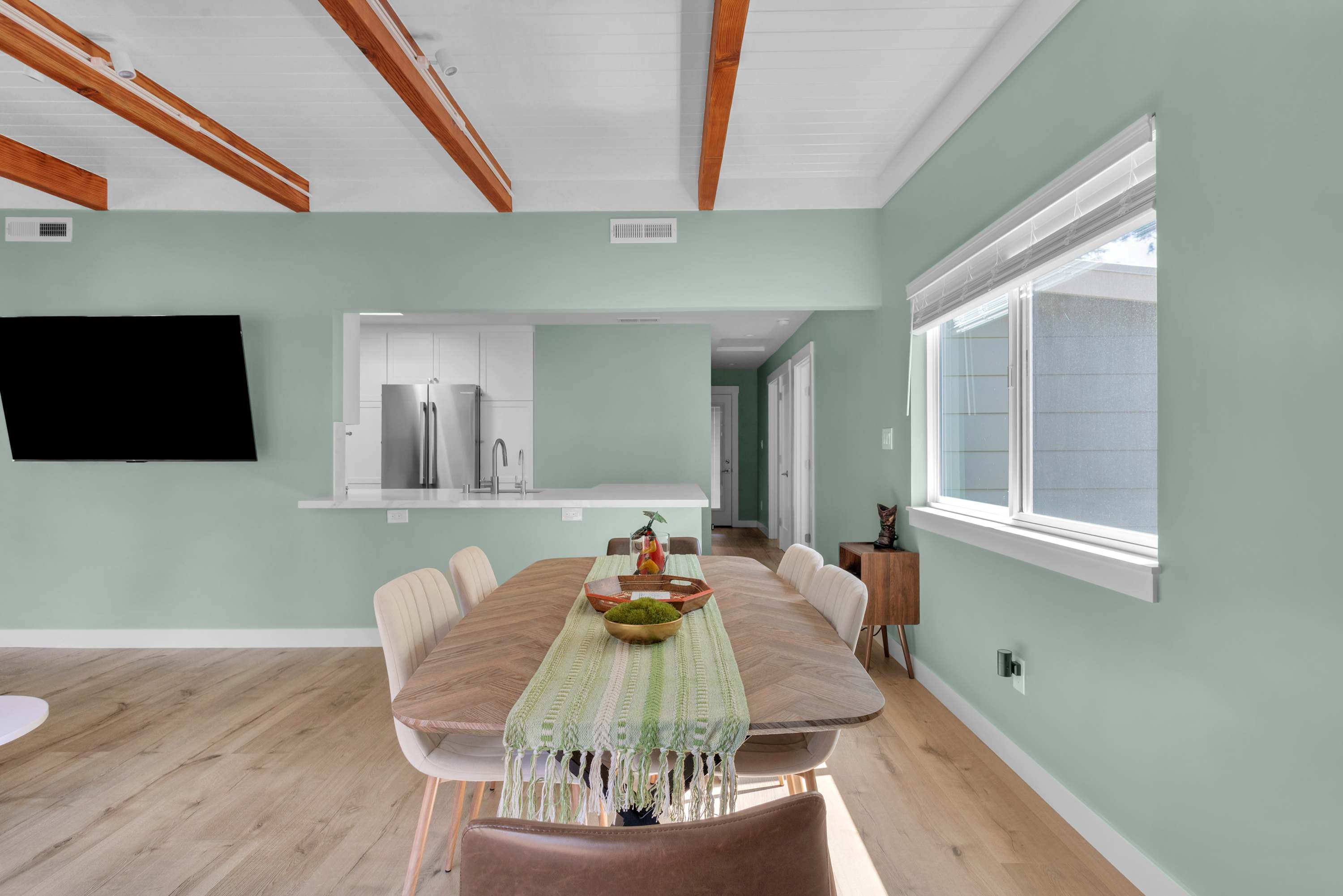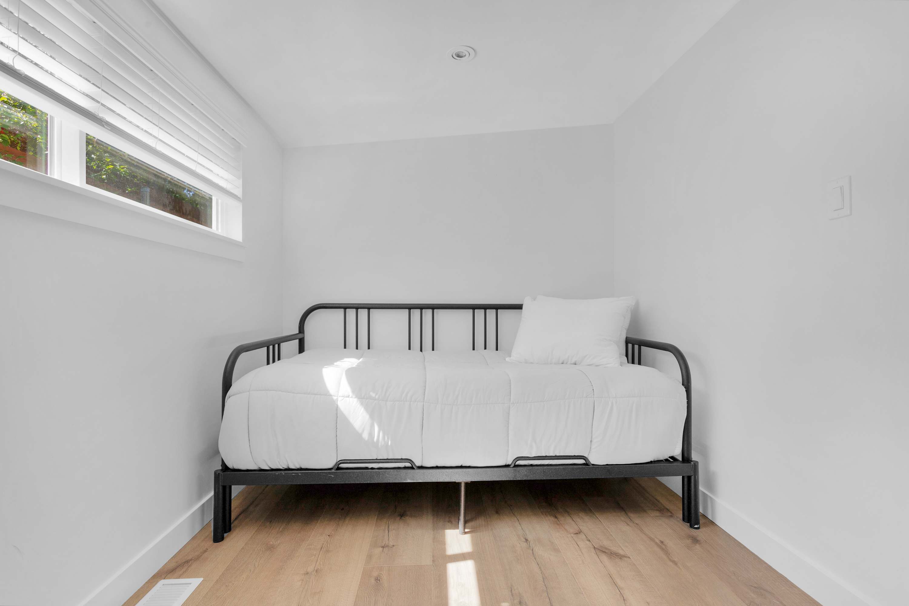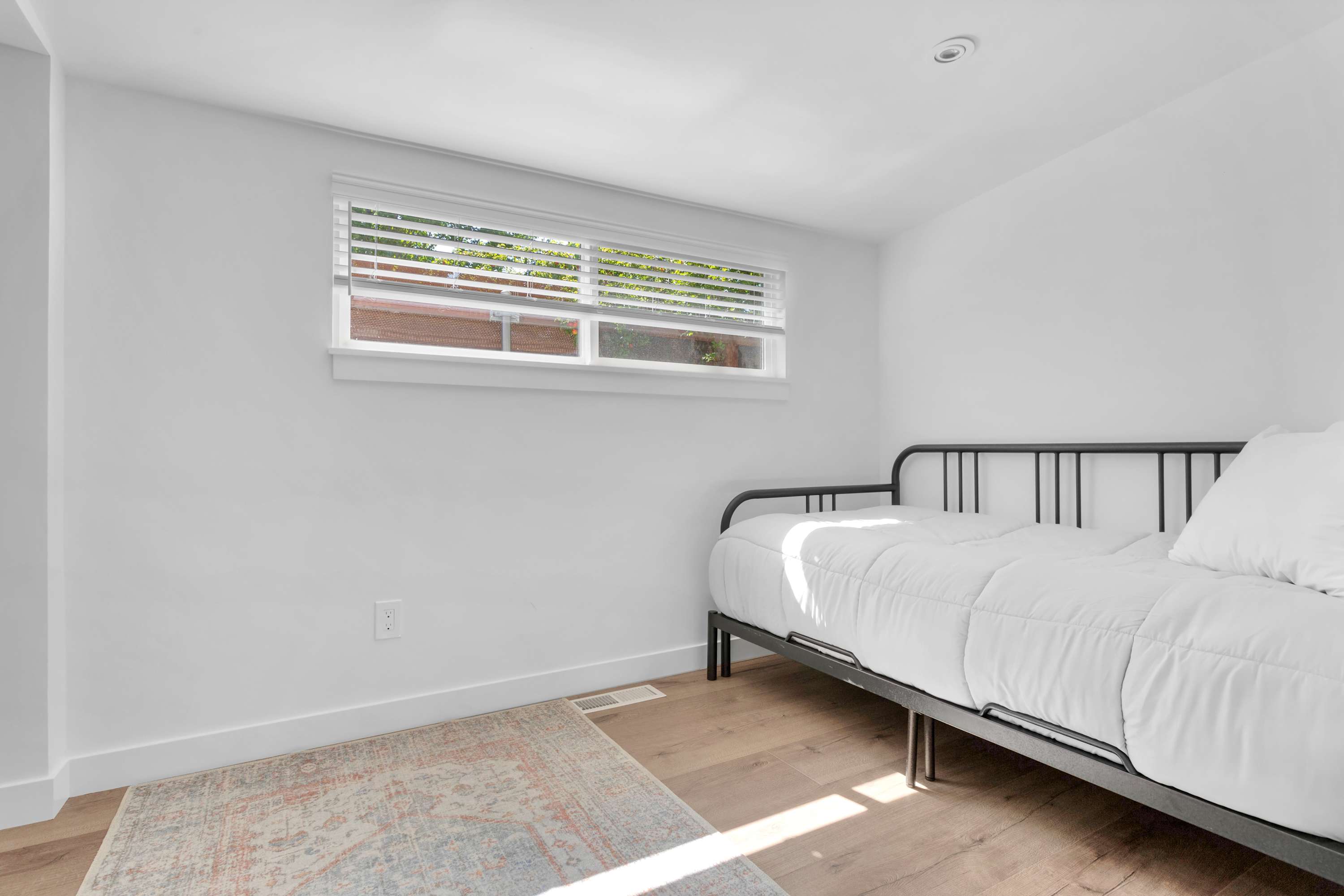 The home comfortably sleeps six guests across three cozy and well-lit bedrooms. The primary bedroom features a queen bed and a private ensuite bathroom. The second bedroom also offers a queen-sized bed, while the third bedroom is furnished with a twin bed and a pull-out trundle. The two full bathrooms are brand-new, featuring beautiful finishes and custom shower doors. The laundry room has a brand new washer and dryer which adds convenience for longer stays.