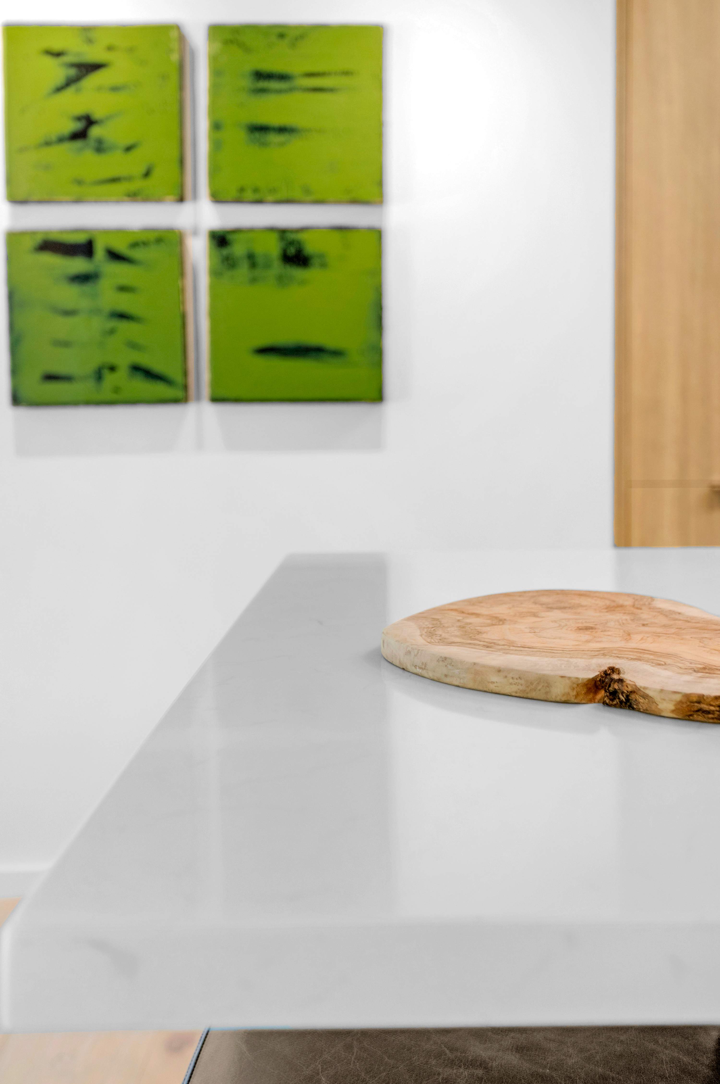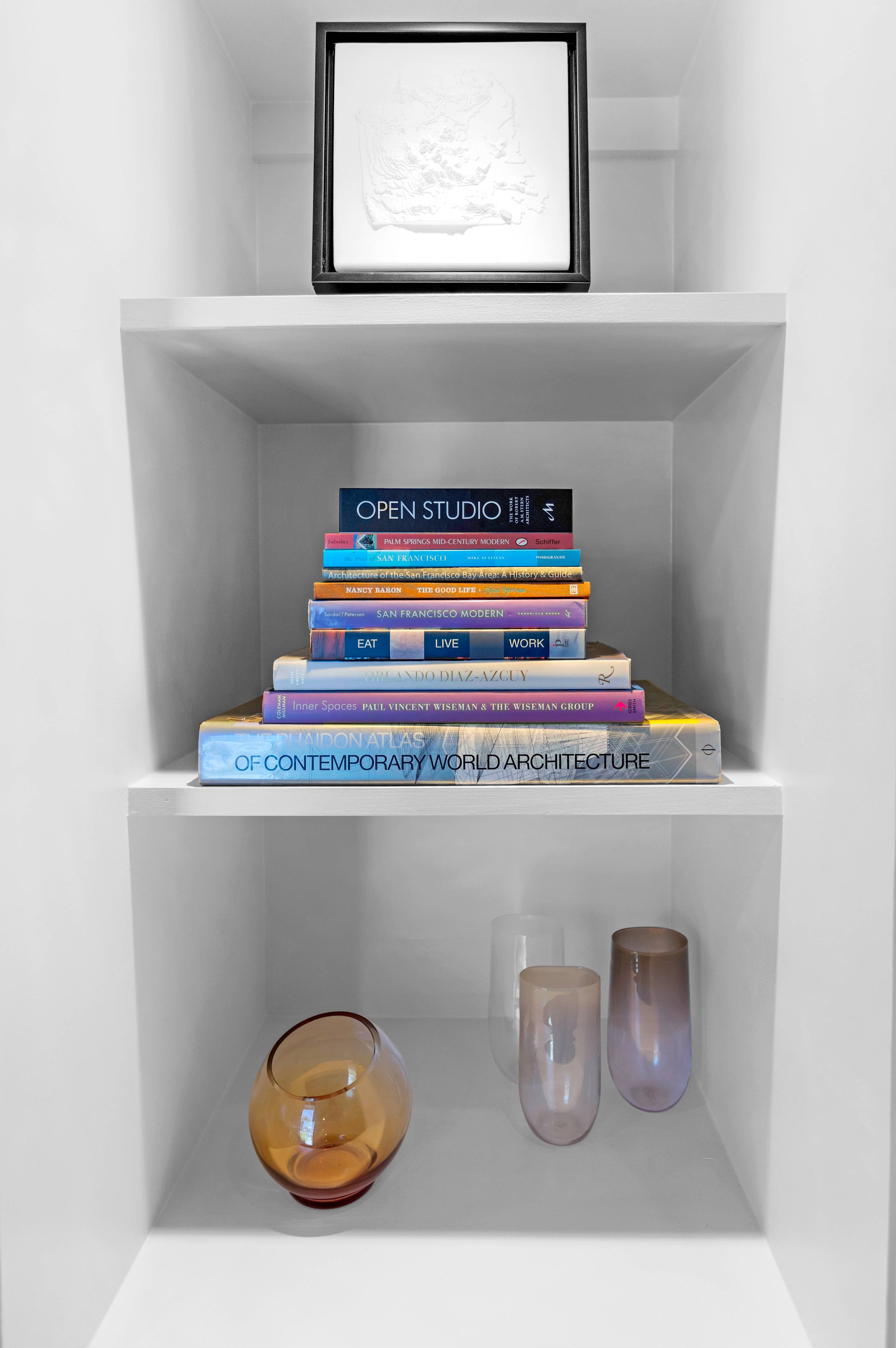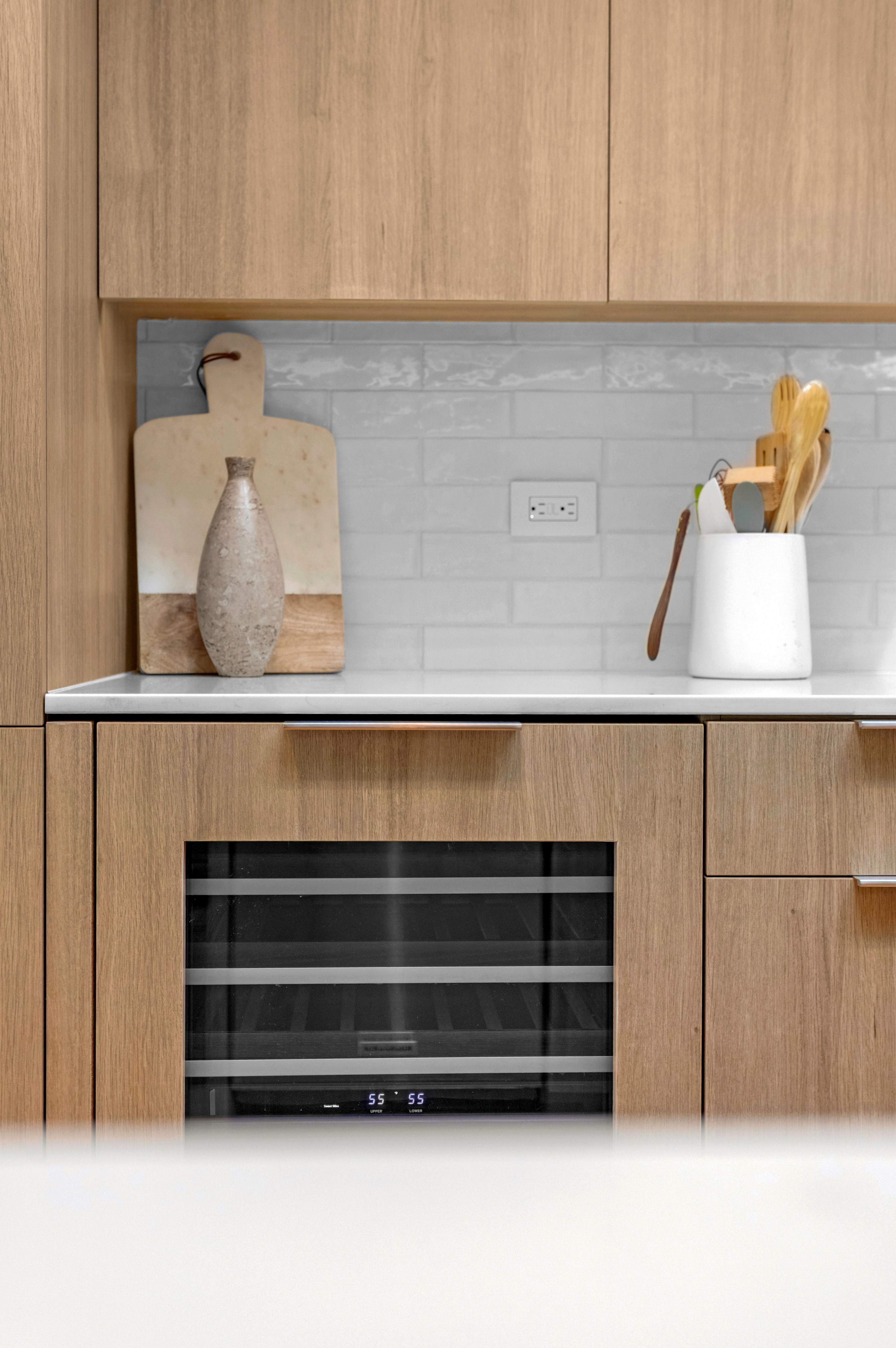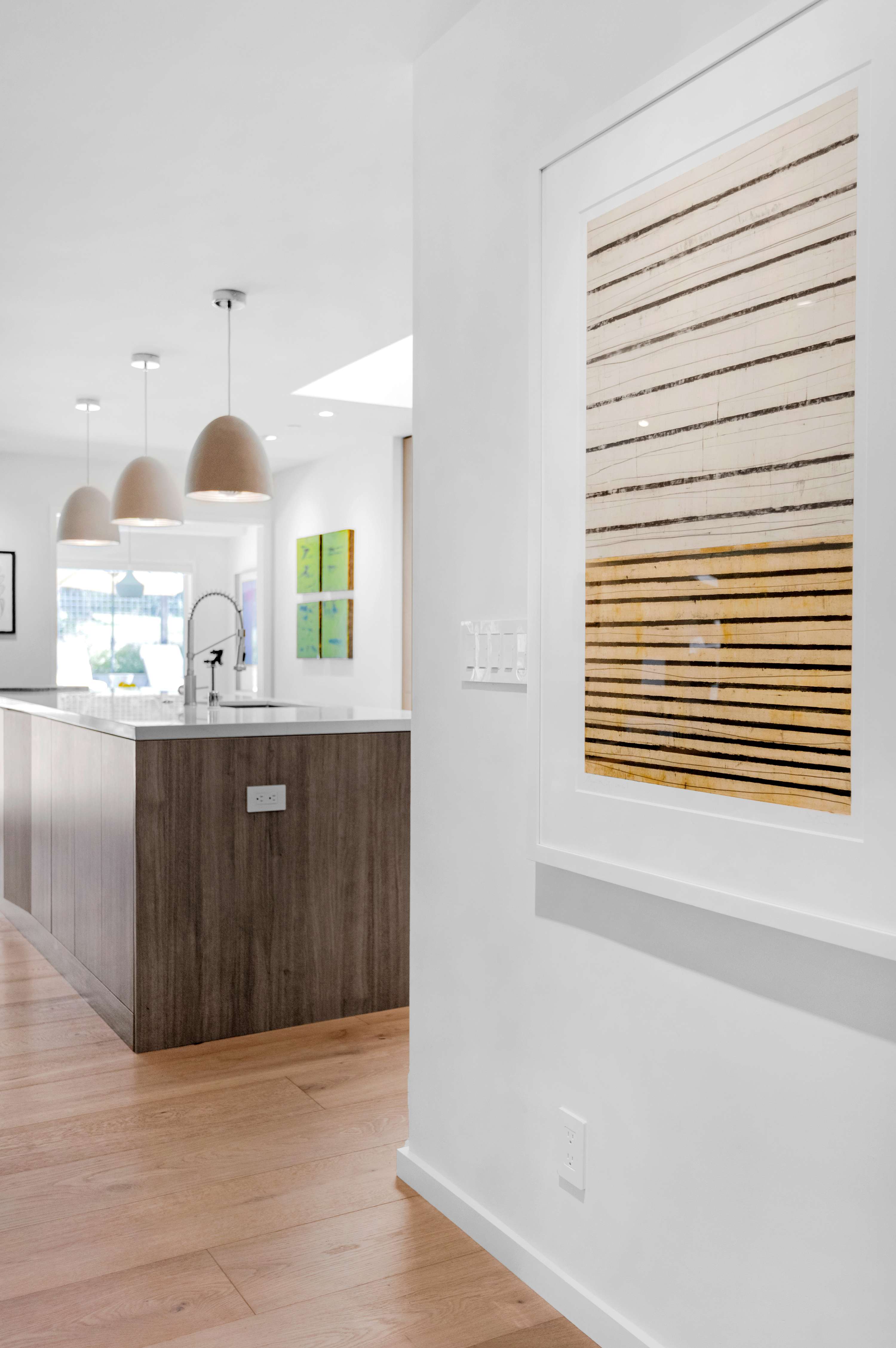 Two additional guest rooms offer quiet, private spaces. One features a comfortable king bed with a simple, contemporary design, while the other is a bright, light-filled room with a queen bed. They share a hall bathroom that continues the home’s clean design with beautiful light wood and high-end finishes.