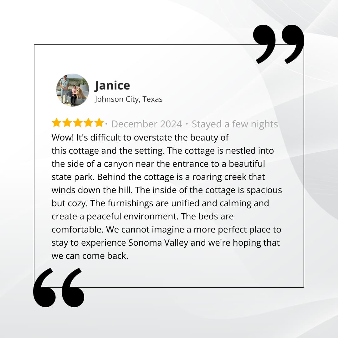 Unwind in this peaceful woodland cottage in the heart of Kenwood. With 2 bedrooms and a cozy bunk room, 1 bath, and a bright, open living space, this 1,100 sq. ft. retreat sits right along a tranquil scenic creek. Enjoy a fully equipped kitchen, spacious deck, and easy access to 20+ wineries, Sugarloaf Ridge State Park, and nearby towns. Perfect for families, remote workers, and wine country explorers.