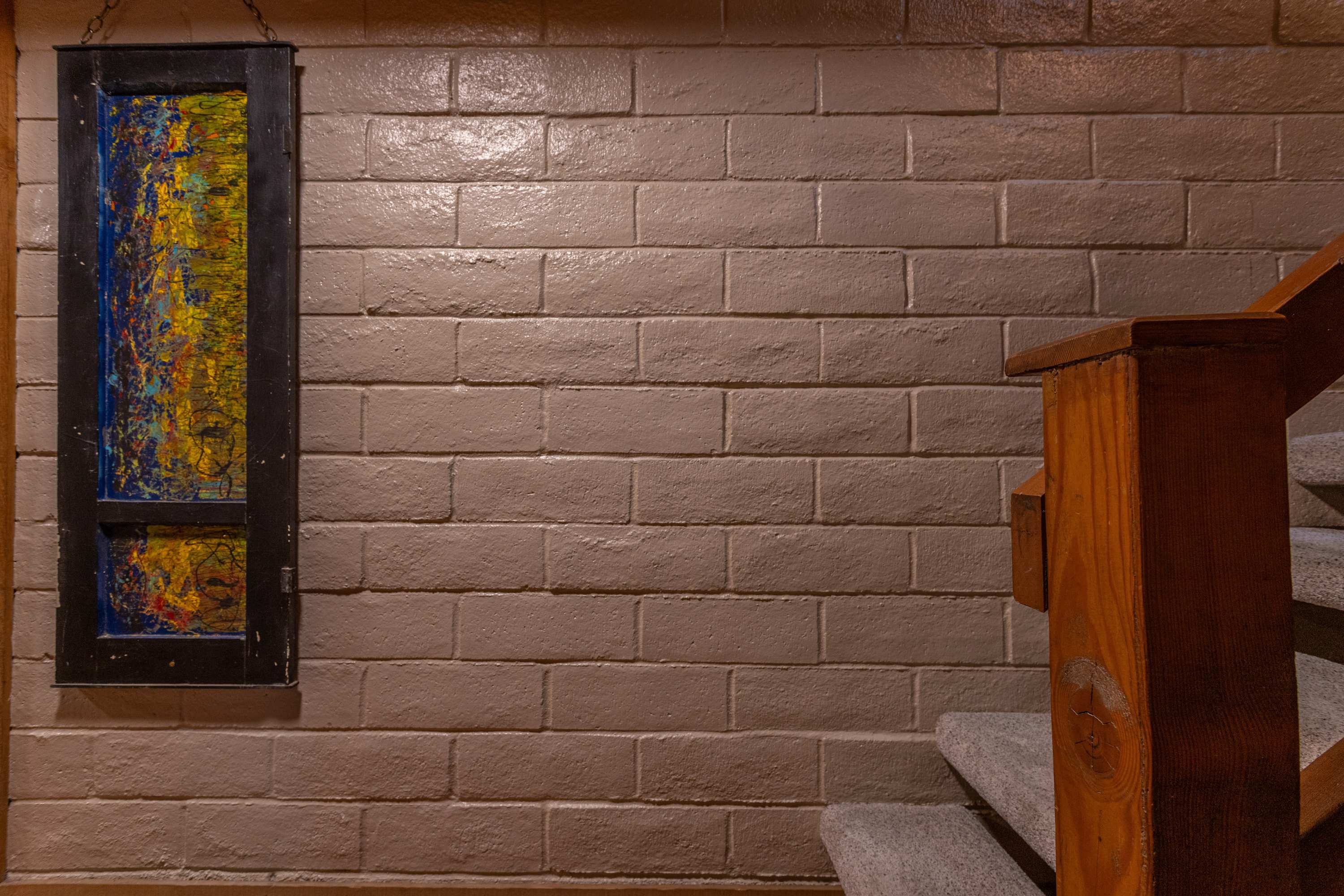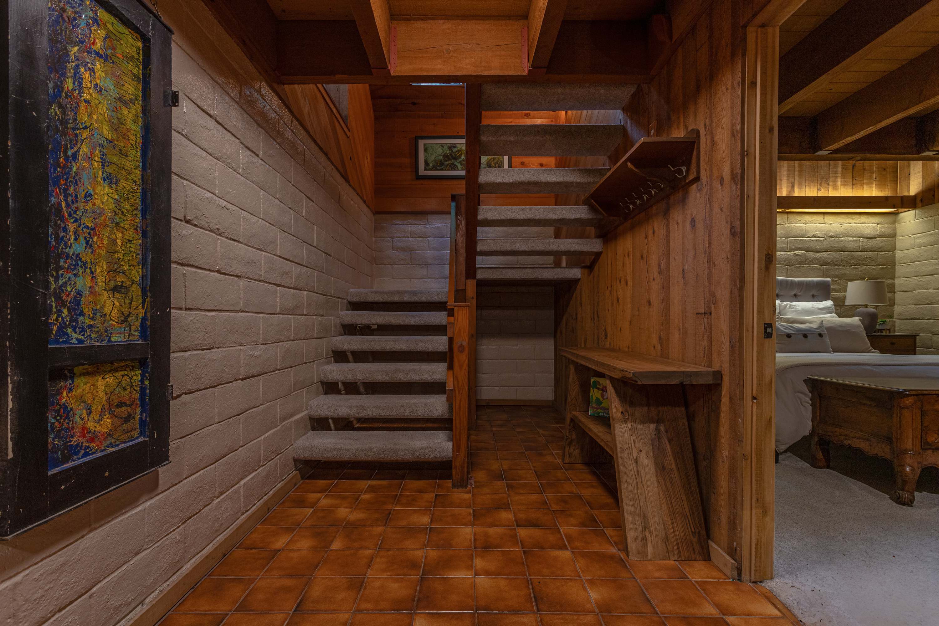 The lower level is a peaceful retreat with two distinct rooms. The first features a King bed, where original art and moody lighting create a sophisticated ambiance. Tucked away in a quiet corner of the house, the second room offers a restful Queen bed, ensuring a great night's sleep. For personalized comfort, each room has its own dedicated heating and air conditioning unit. A convenient full bathroom and laundry facilities also serve this level.