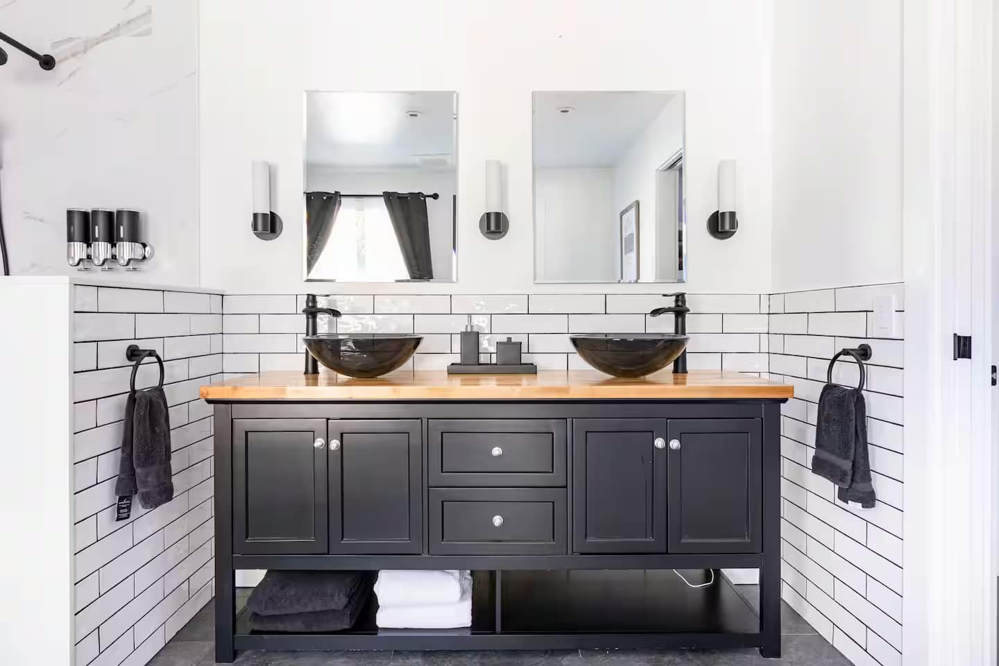 The main bathroom is clean and convenient. With fresh towels, shampoo, conditioner, and body wash, you can pack light knowing we have the essentials covered.