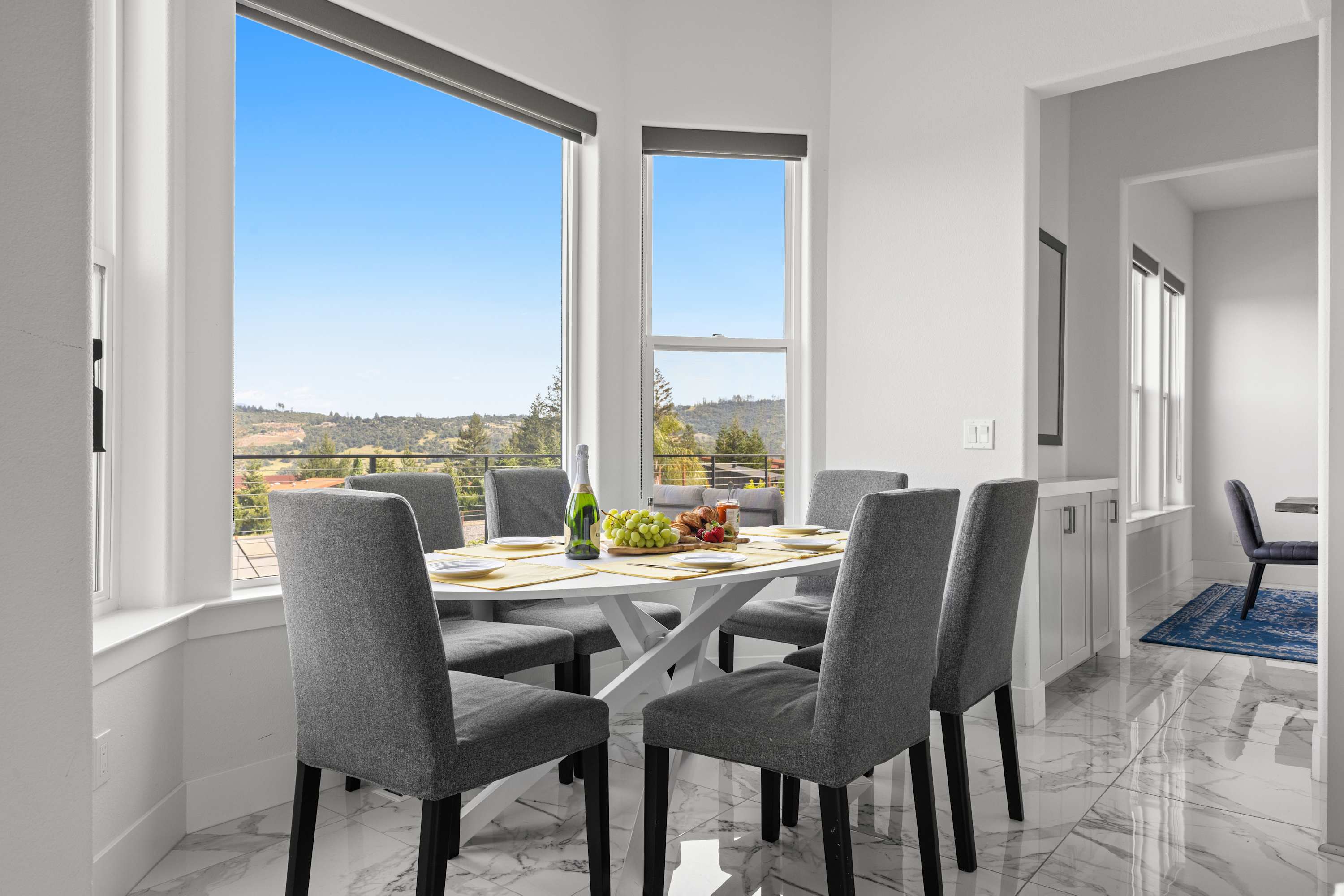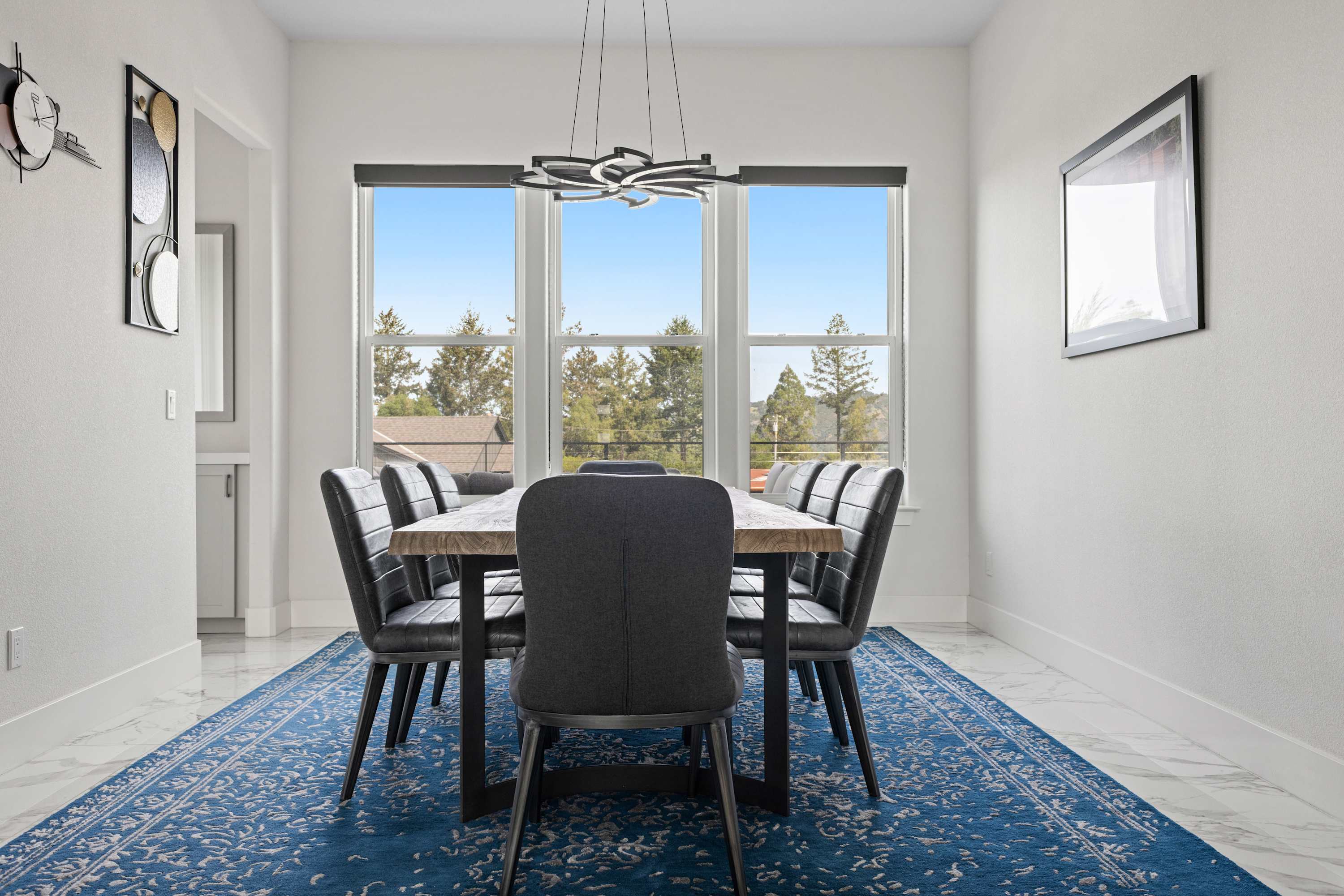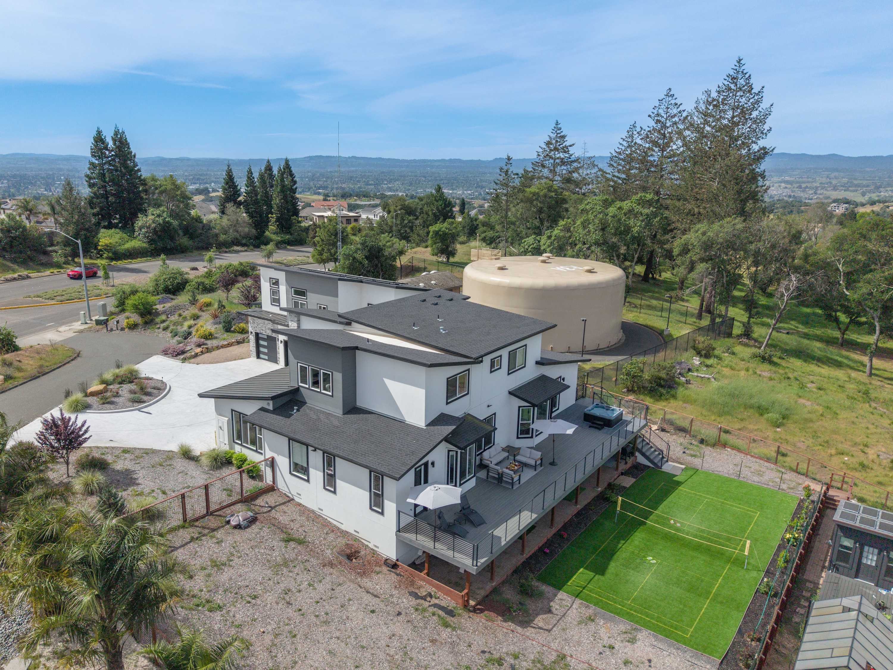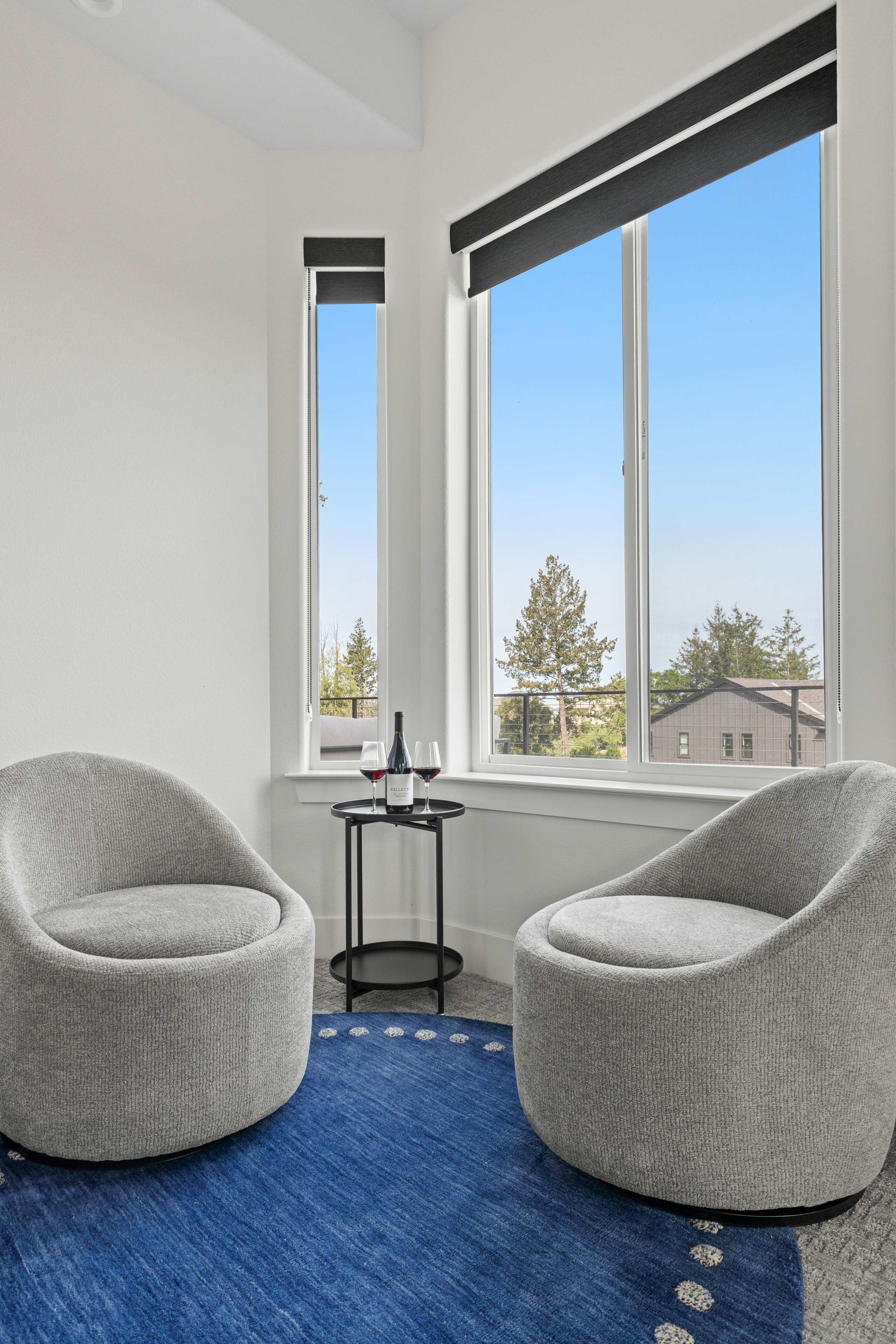 Rebuilt after the 2017 Tubbs Fire, The Apex on Fountaingrove stands as a premier testament to modern luxury and high-design resilience. Perched at the crest of the hill in an upscale community known for its beautiful views, this expansive home offers a front-row seat to the rolling Fountaingrove hillside. Located just north of the historic Junior College neighborhood, the estate combines a sense of hilltop seclusion with easy access to the very best of Sonoma County. With its striking black trim, crisp white walls, and light-filled rooms, this is a sophisticated sanctuary designed for guests who appreciate clean aesthetics and a true Wine Country perspective.