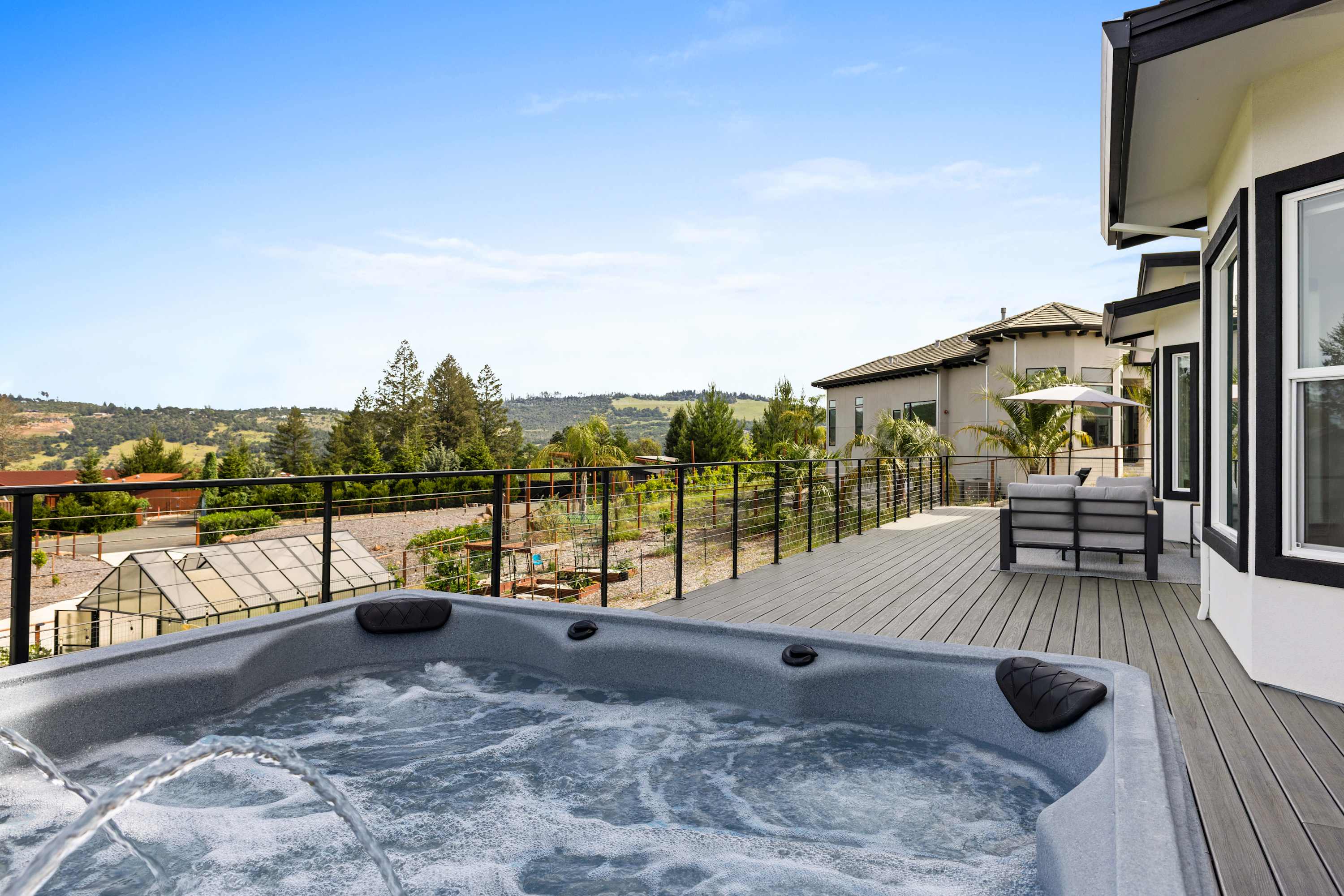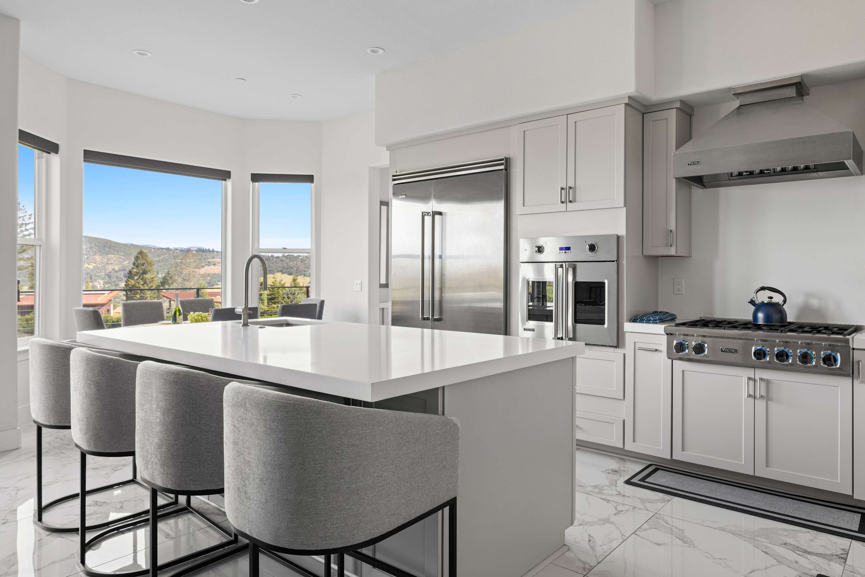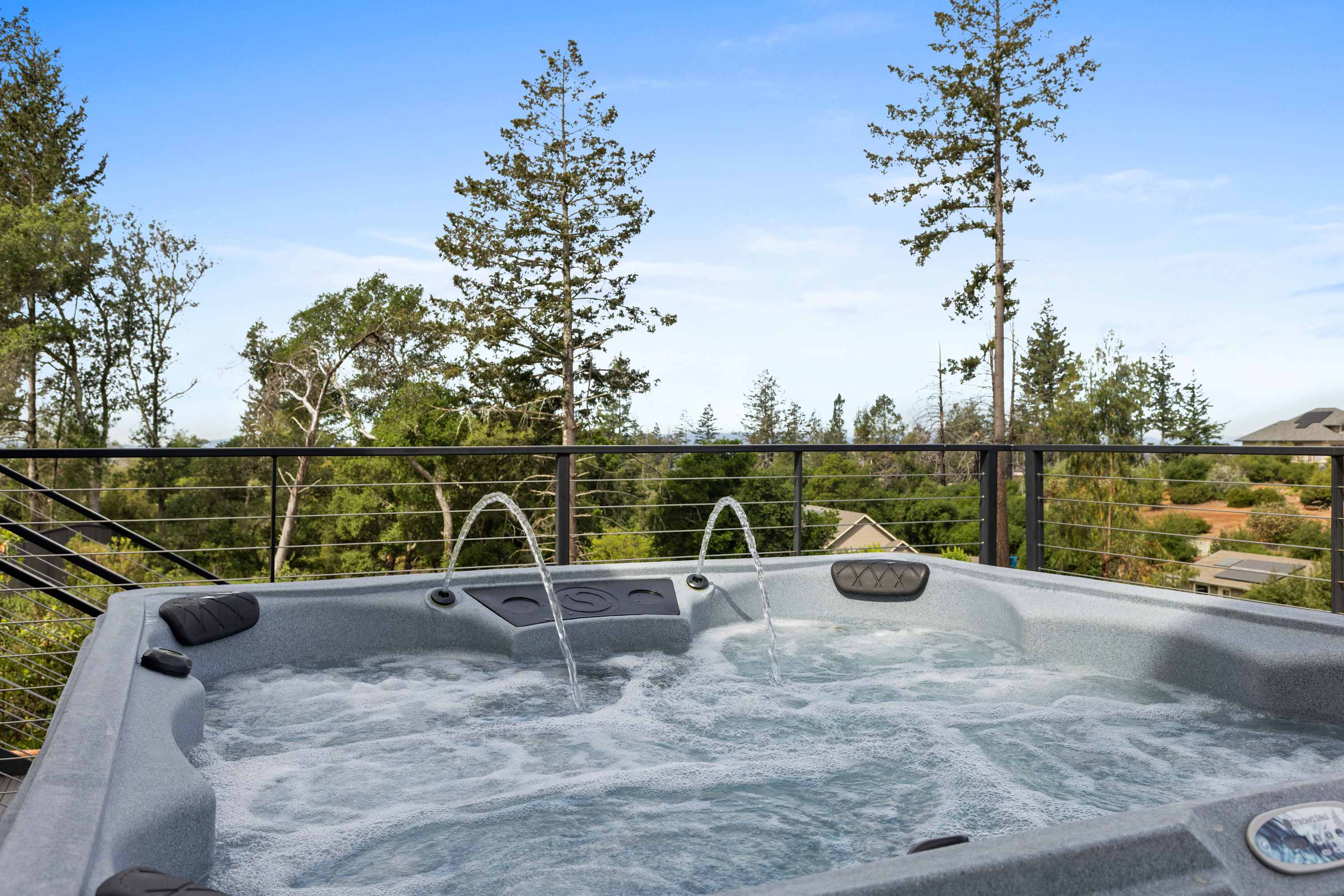 Rebuilt after the 2017 Tubbs Fire, The Apex on Fountaingrove stands as a premier testament to modern luxury and high-design resilience. Perched at the crest of the hill in an upscale community known for its beautiful views, this expansive home offers a front-row seat to the rolling Fountaingrove hillside. Located just north of the historic Junior College neighborhood, the estate combines a sense of hilltop seclusion with easy access to the very best of Sonoma County. With its striking black trim, crisp white walls, and light-filled rooms, this is a sophisticated sanctuary designed for guests who appreciate clean aesthetics and a true Wine Country perspective.