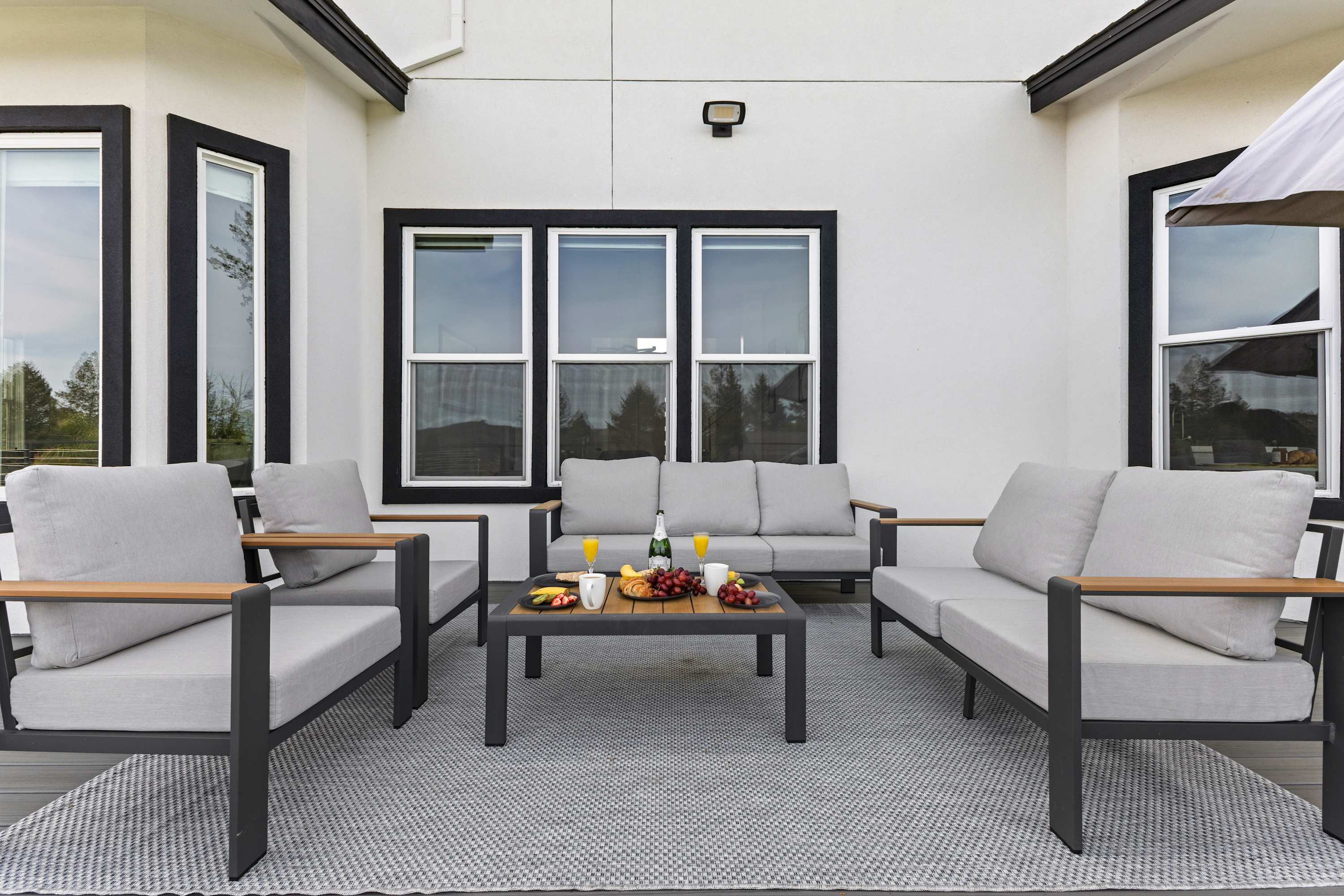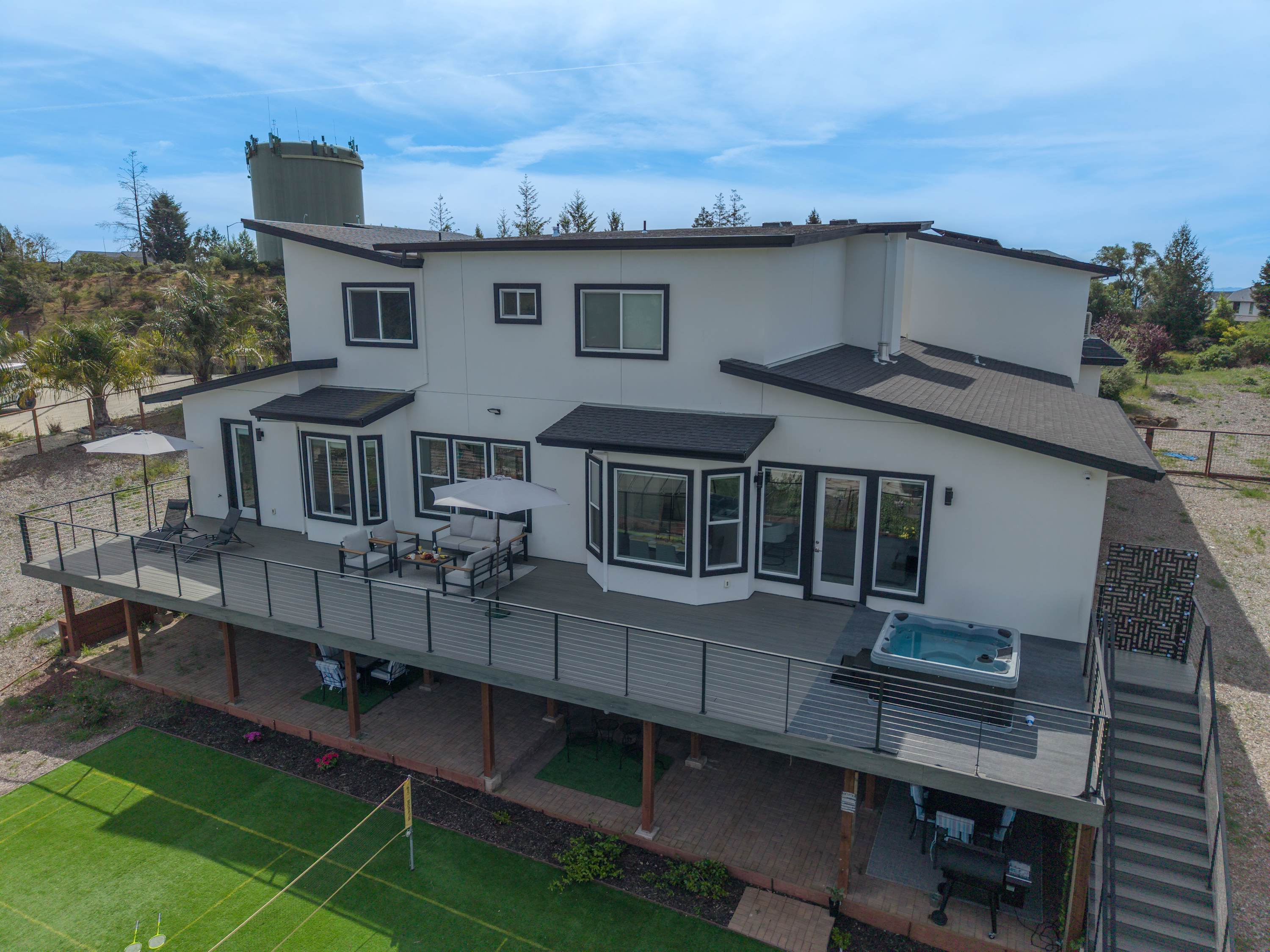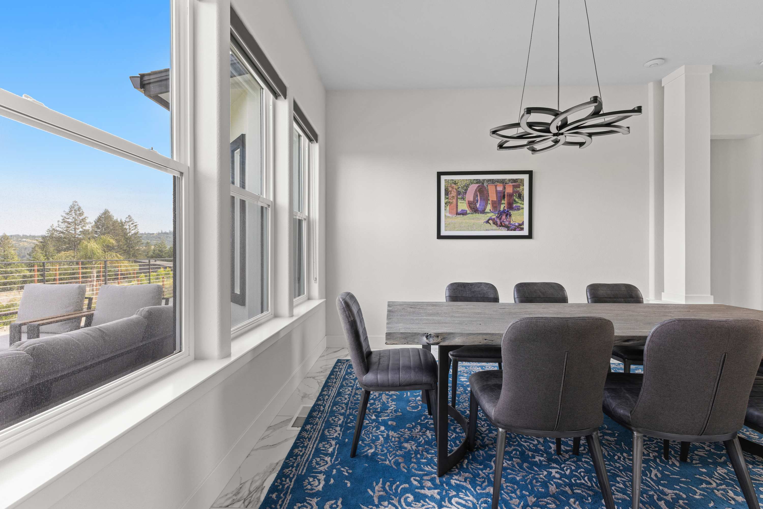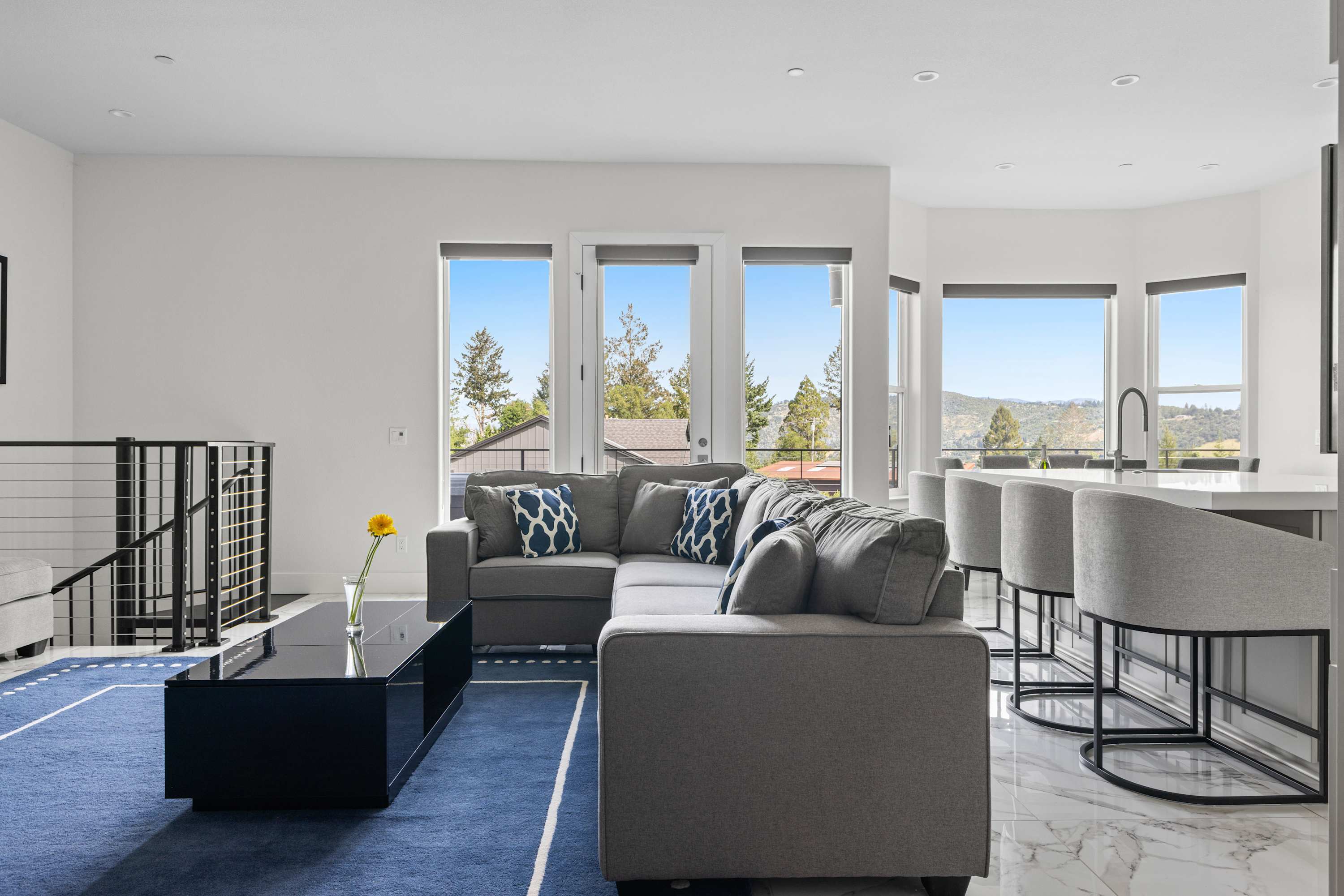 Rebuilt after the 2017 Tubbs Fire, The Apex on Fountaingrove stands as a premier testament to modern luxury and high-design resilience. Perched at the crest of the hill in an upscale community known for its beautiful views, this expansive home offers a front-row seat to the rolling Fountaingrove hillside. Located just north of the historic Junior College neighborhood, the estate combines a sense of hilltop seclusion with easy access to the very best of Sonoma County. With its striking black trim, crisp white walls, and light-filled rooms, this is a sophisticated sanctuary designed for guests who appreciate clean aesthetics and a true Wine Country perspective.