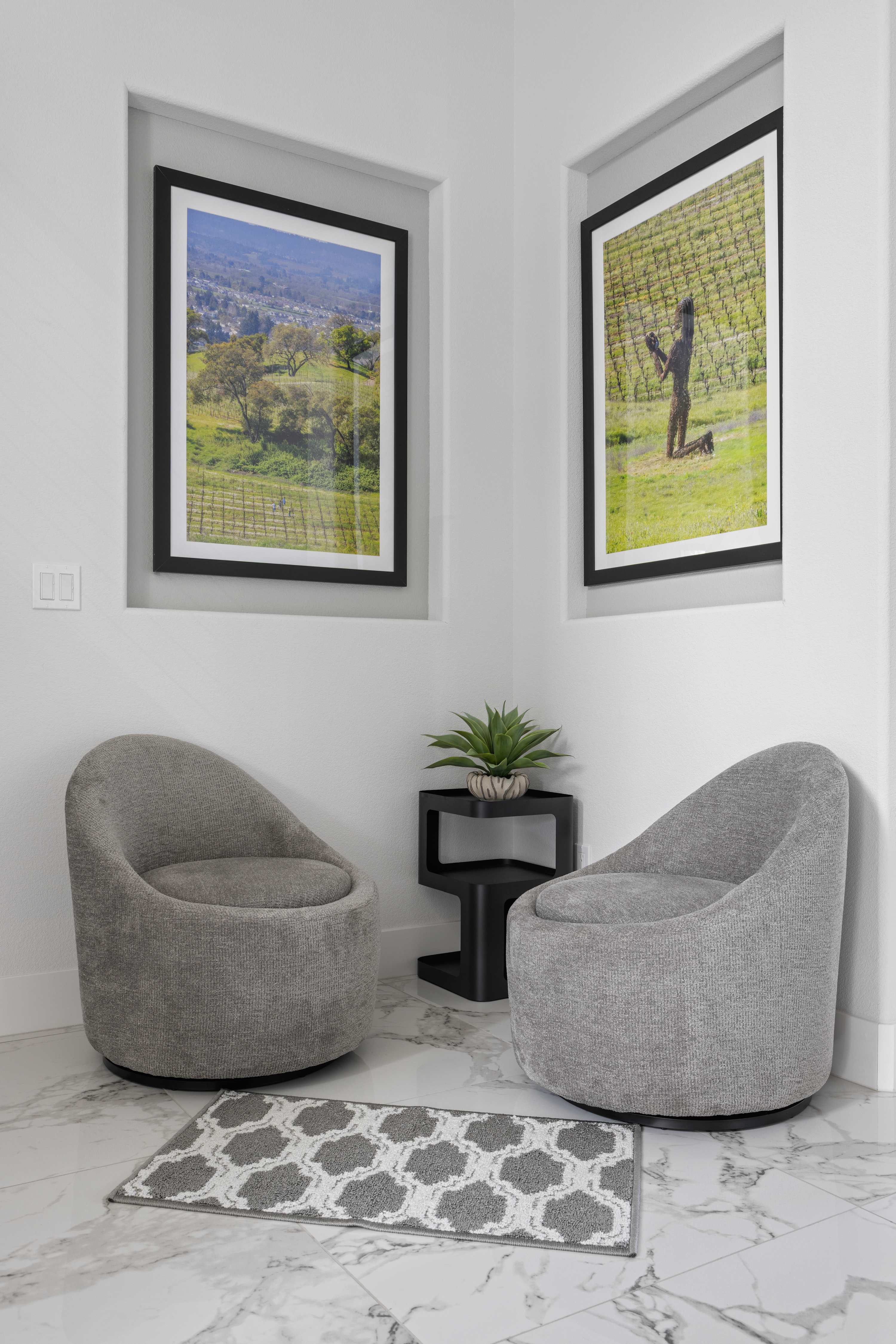 Throughout the home, nature serves as the primary artist. Original photography is featured in every room, capturing the beauty of Sonoma County from the rugged coast to the local vineyards and poignant views of Coffey Park. Many of the photographs highlight the iconic sculptures found at Paradise Ridge Winery, located just a short drive away, weaving a story of local art and environmental resilience into the fabric of the house.