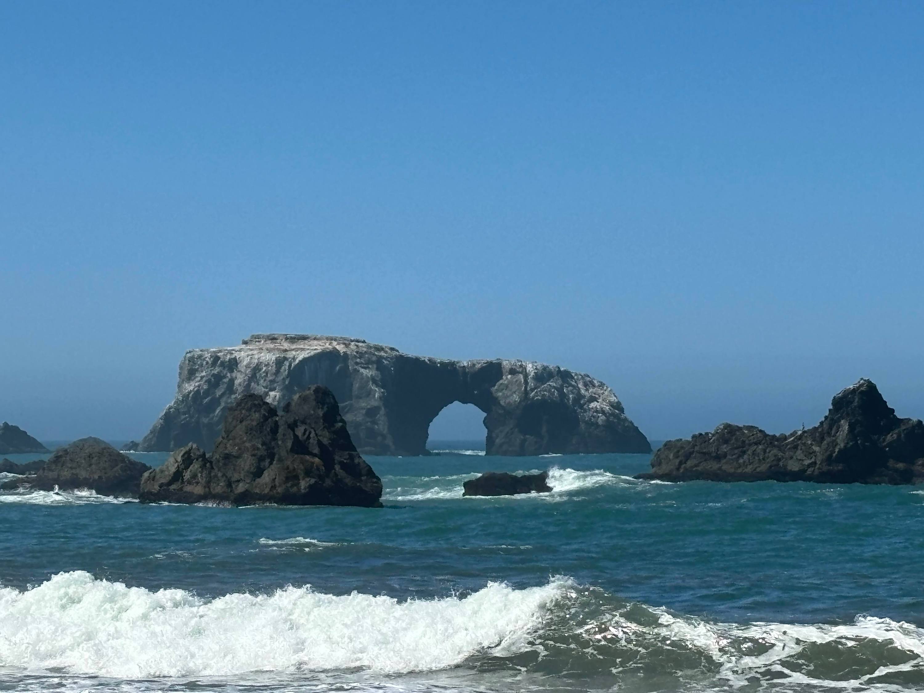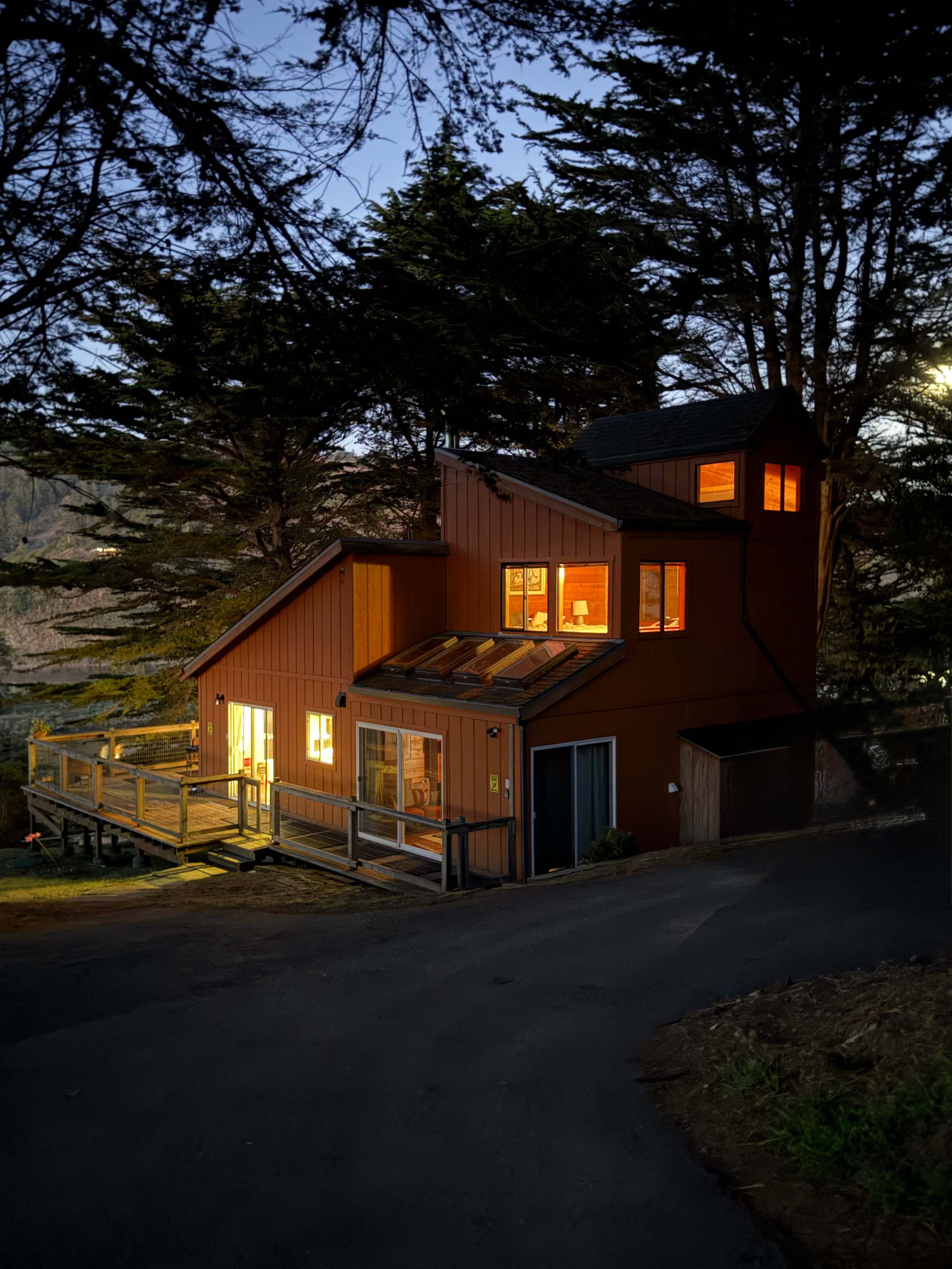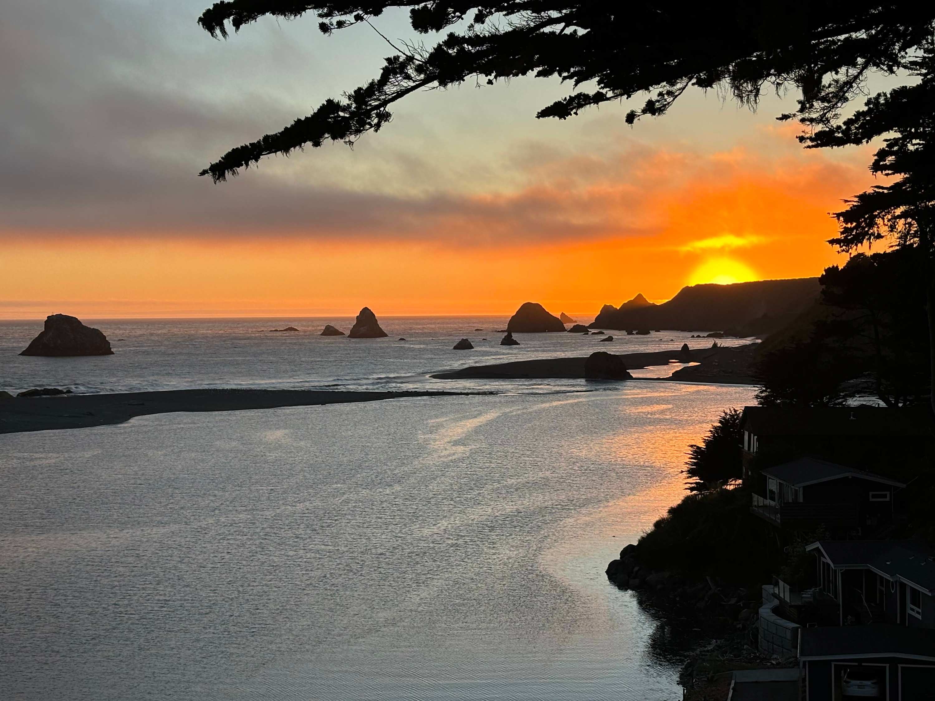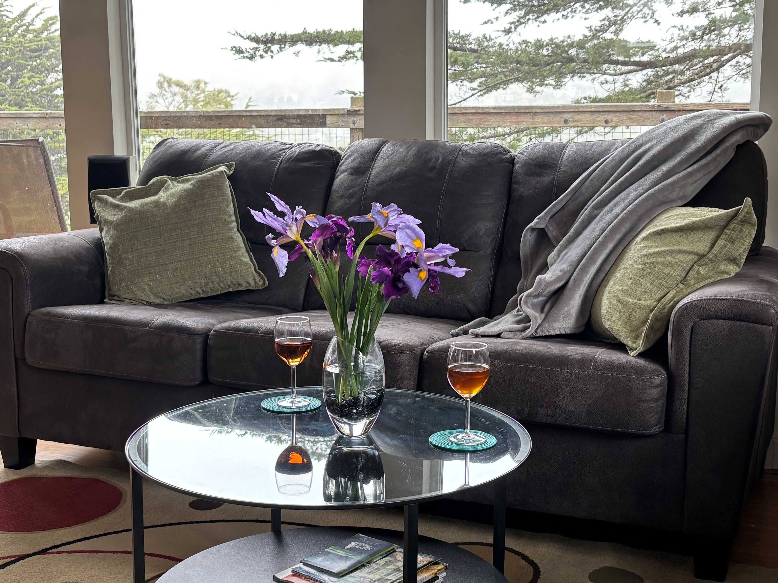 Perched on a hill within Goat Rock State Park in Jenner, CA, Tidesong is a quiet riverfront home at the mouth of the Russian River, where the ocean meets the river. Sit back, relax, unwind and enjoy the coast at your own pace. With a wraparound deck, private hot tub, cozy wood stove, and river views from most rooms, it’s easy to spend your days relaxing, cooking at home, or exploring nearby beaches and trails.